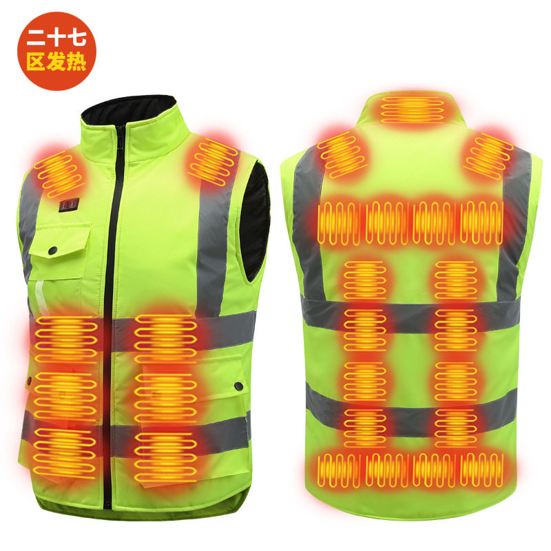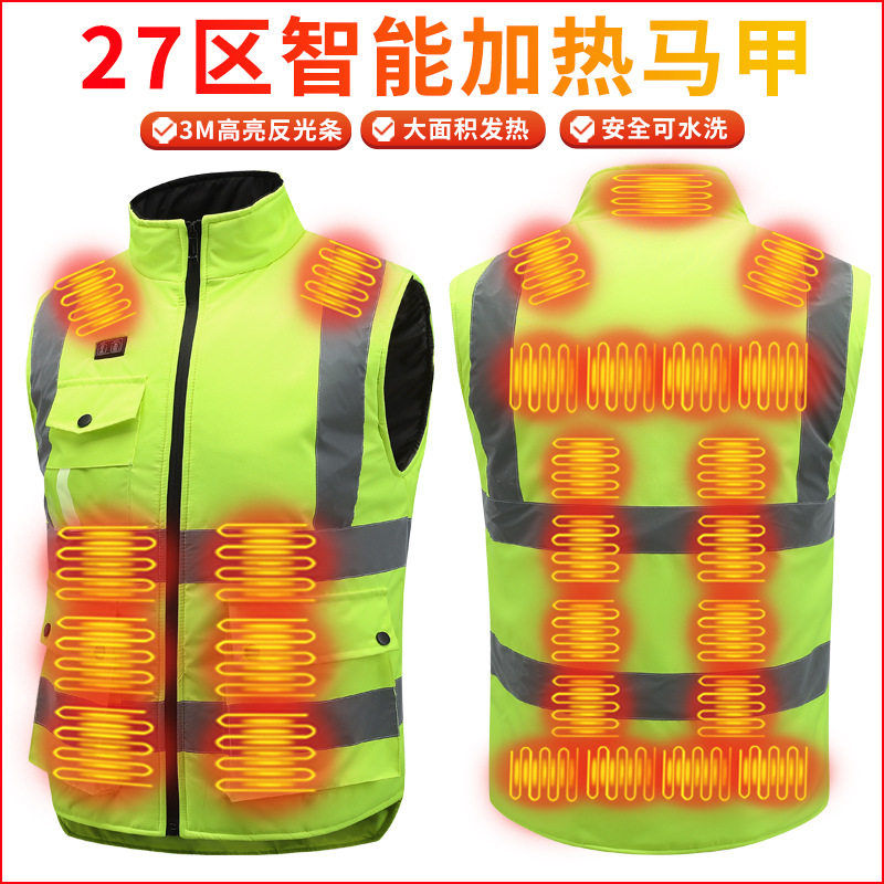 冬发热马甲黑科技男女加厚保暖外套电热马甲荧光3M夜视高亮反光条