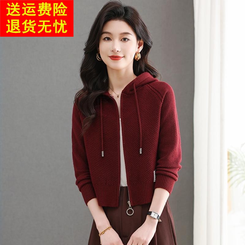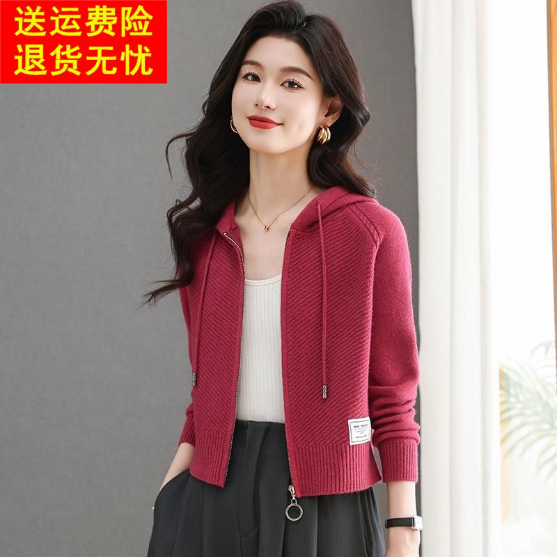 春装新款短装毛衣外套女小个子针织上衣外搭连帽宽松休闲短款高腰