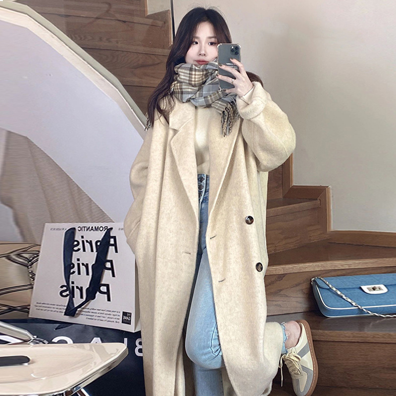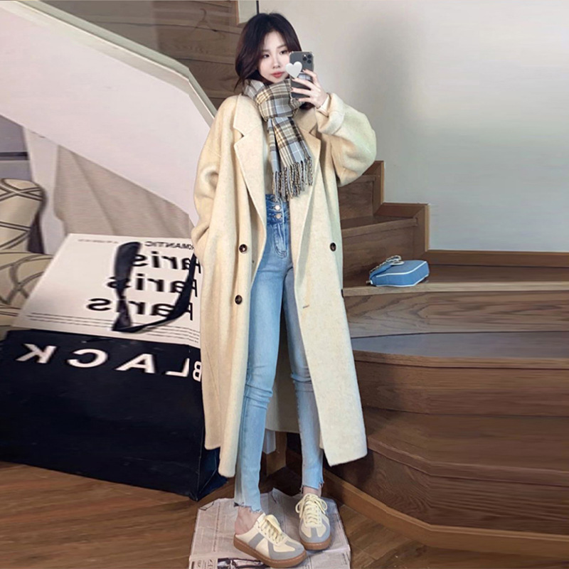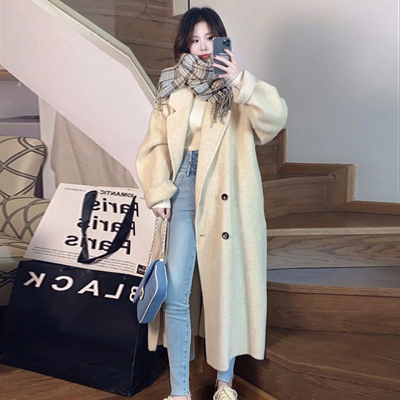 燕麦色双面羊绒大衣女2025秋冬新款韩版宽松中长款高端羊毛呢外套