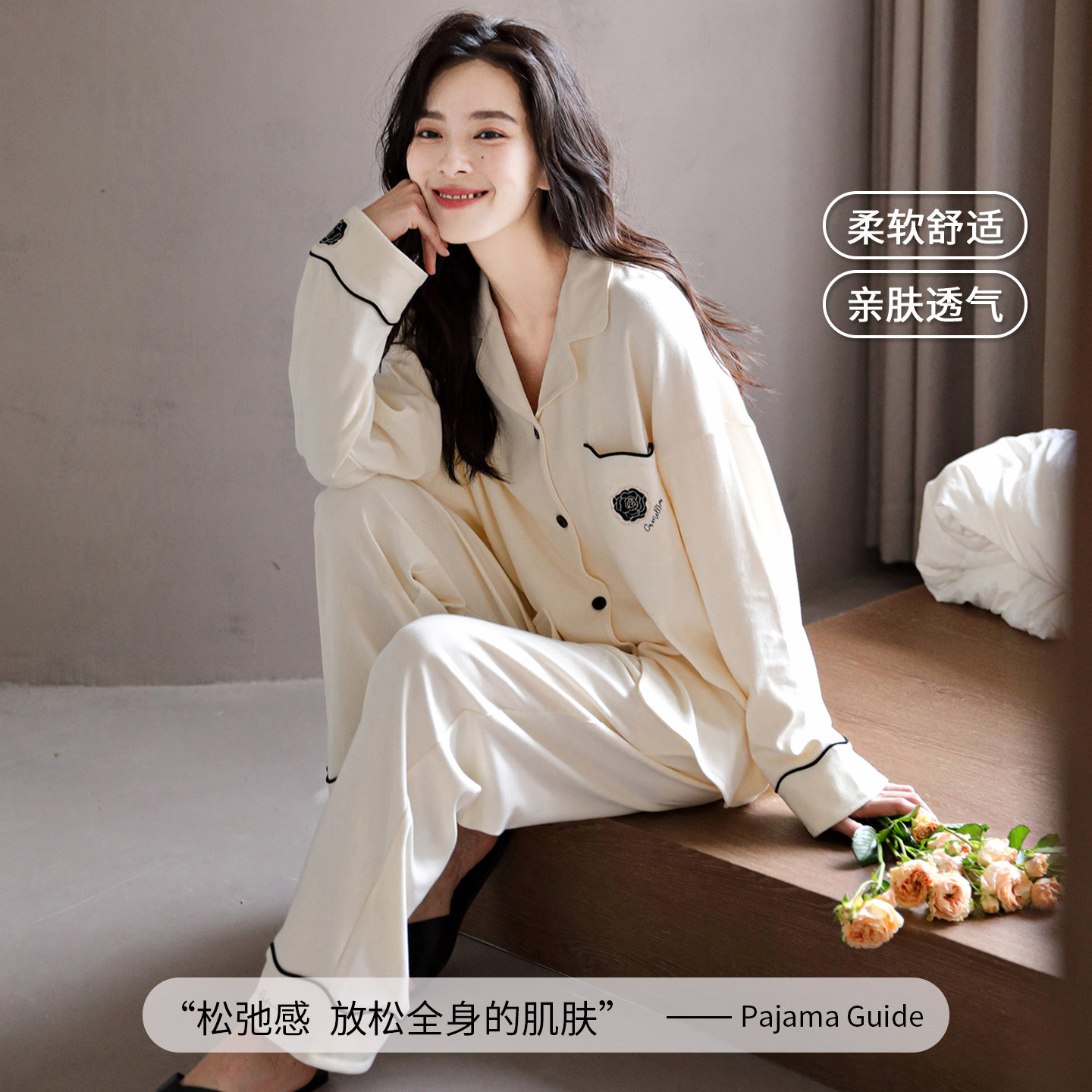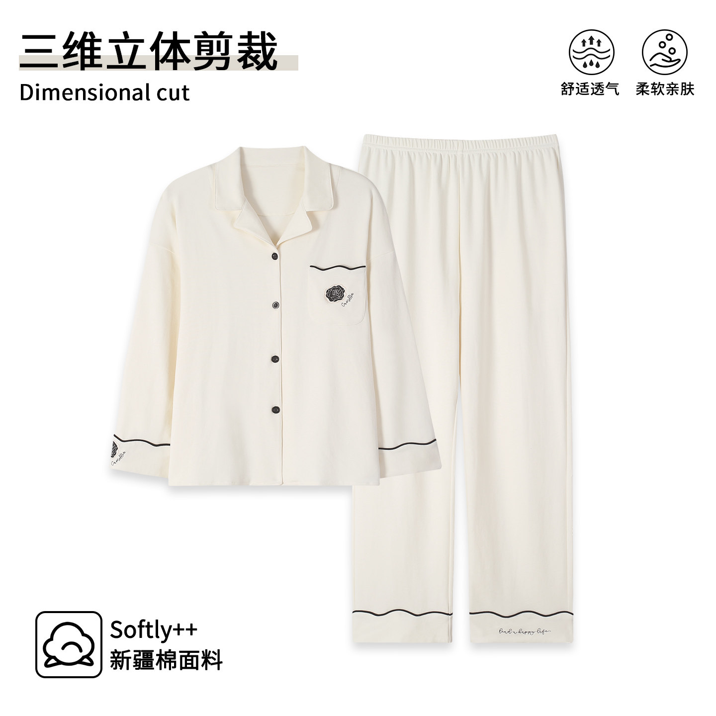 【芬腾】100%棉睡衣女柔软不起球