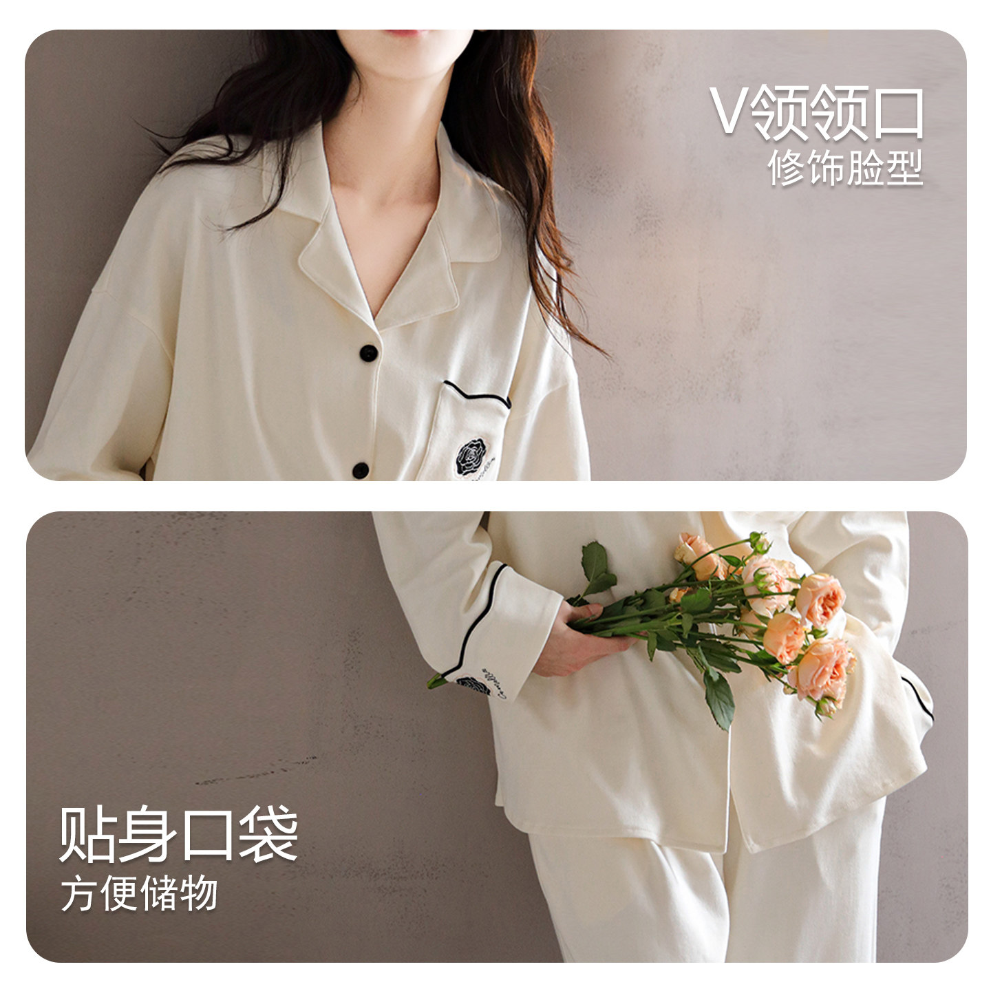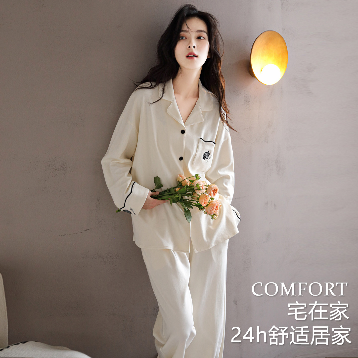 芬腾可安睡衣女款冬季纯棉长袖女士2026新款口袋家居服套装春秋季