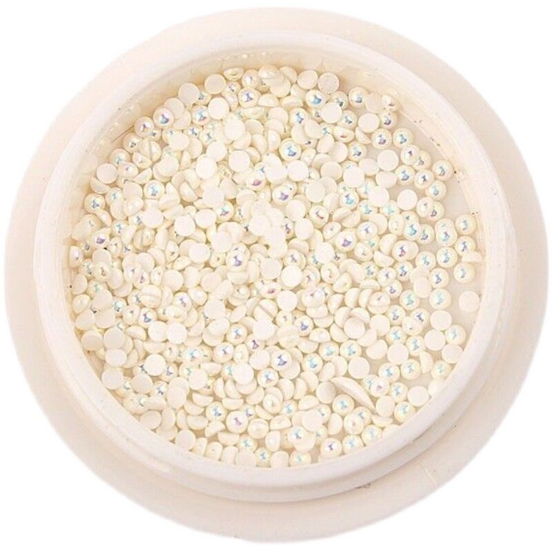 12格盒装韩国珍珠指甲饰品不掉皮纯白AB美甲小号迷你平底半圆