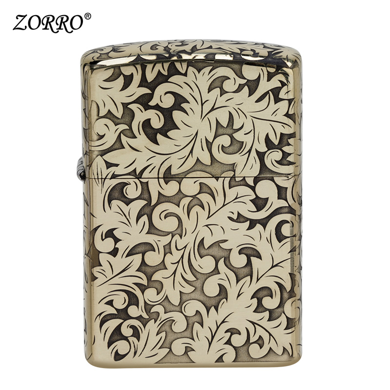 ZORRO佐罗官方旗舰店正品煤油打火机原铜唐草个性防风送男友礼物