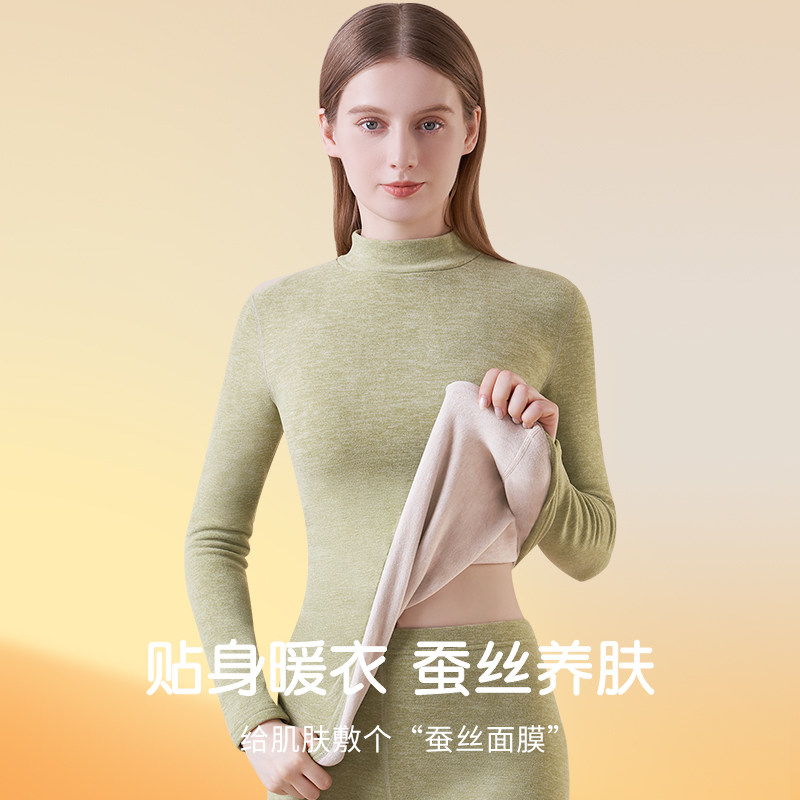 半高领保暖内衣女冬季加厚加绒德大码秋衣秋裤套装羊绒打底内搭