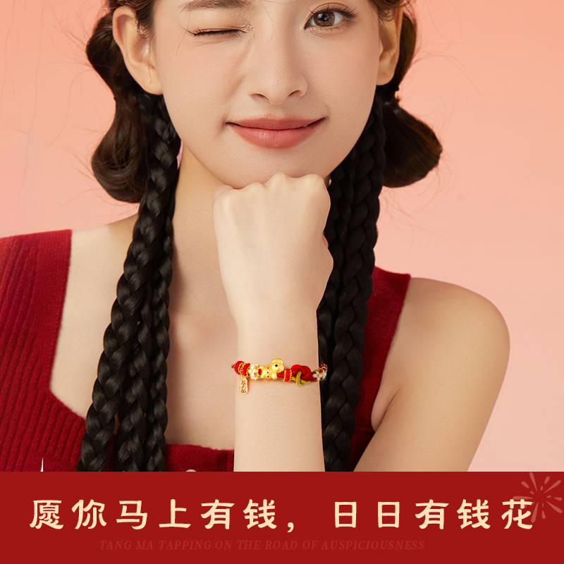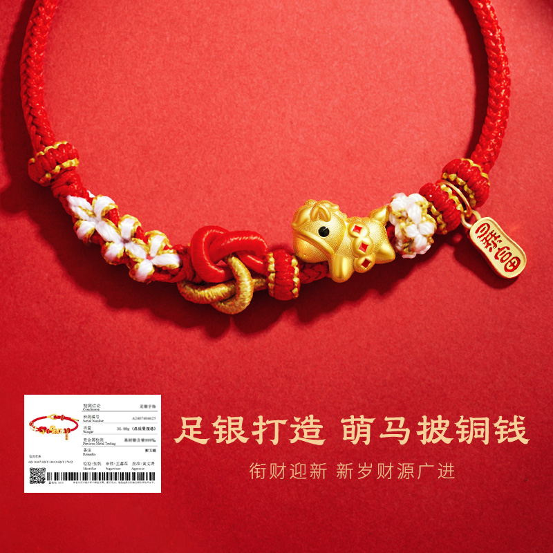 中国黄金央创2026马年本命年红手绳手链吉祥佩戴物新年礼物足银