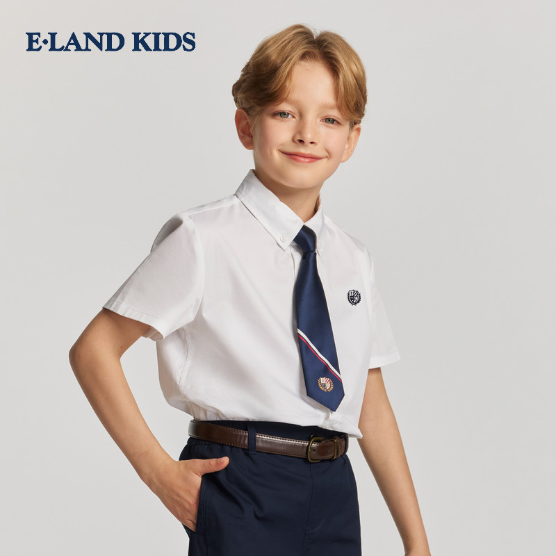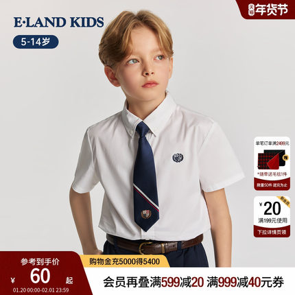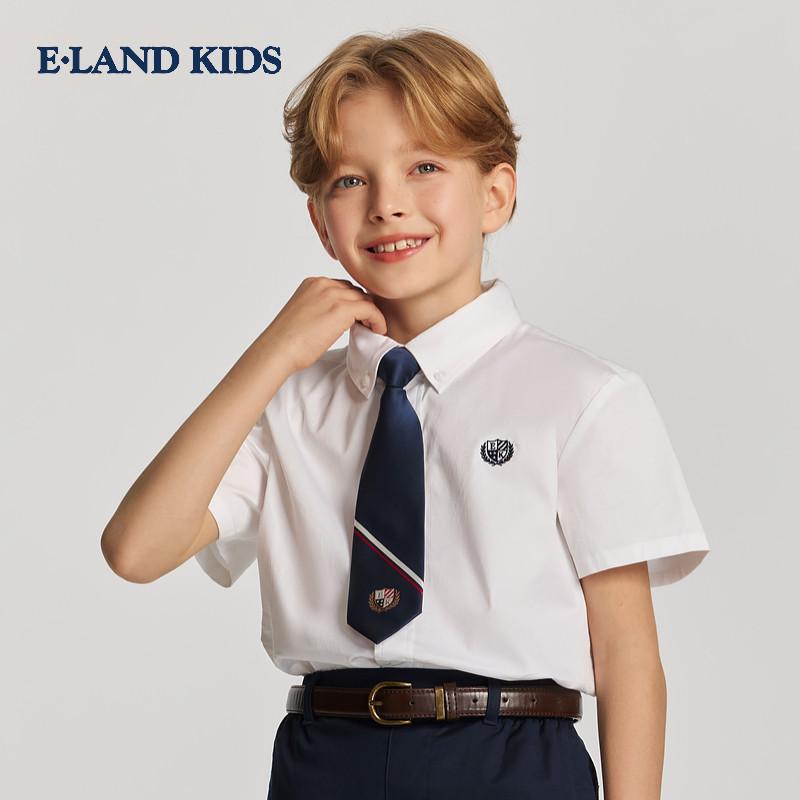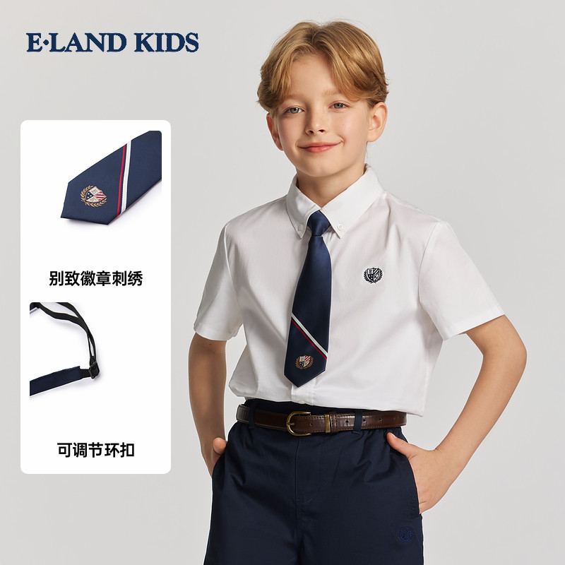 eland kids衣恋童装男童领带26年新品英伦学院风徽章刺绣撞色领带