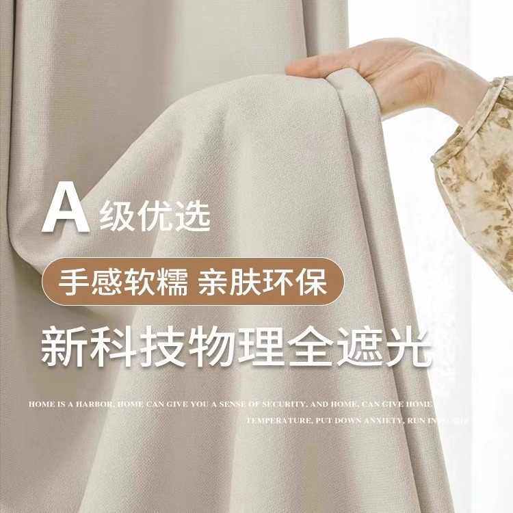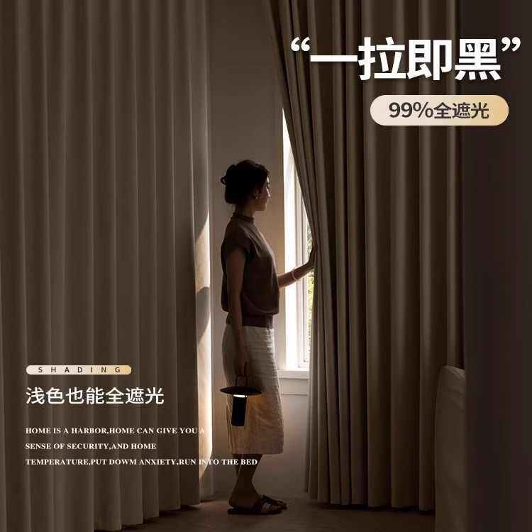 棉麻全遮光窗帘黑金宝丽格日式客厅现代简约窗帘定制挂钩打孔韩褶