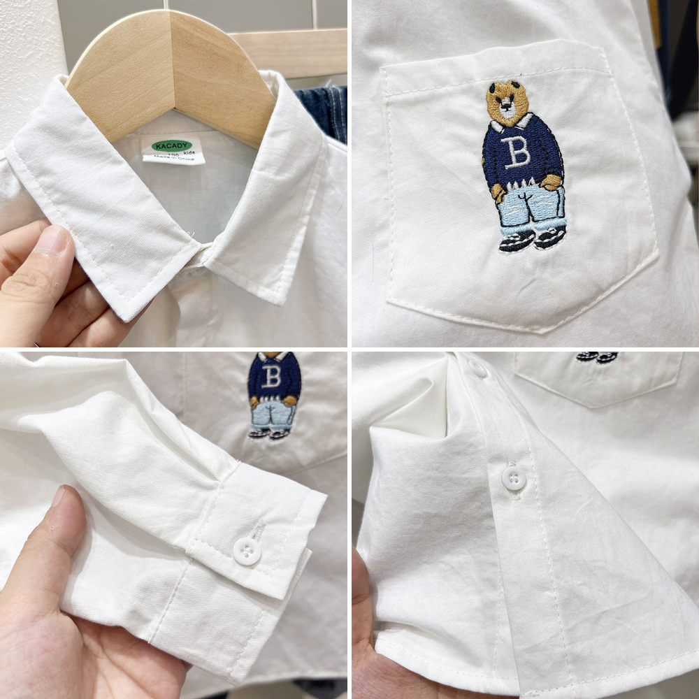 男童纯棉白衬衫中大童纯色秋装