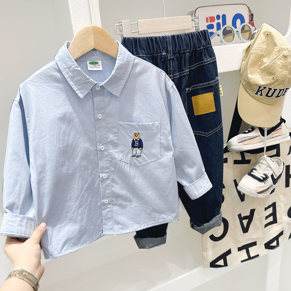 男童白衬衫长袖春秋2025新款童装中大童纯棉秋装男孩上衣儿童衬衣