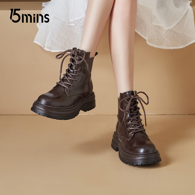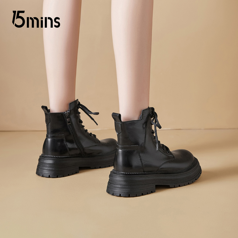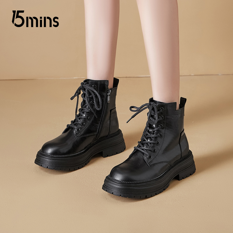 15mins黑色马丁靴女款2025夏季薄款旅游穿搭配裙子厚底英伦风短靴