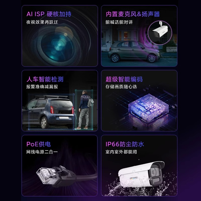 海康威视臻全彩2代400万摄像头网络高清人车检测室外防水3T47SWDV