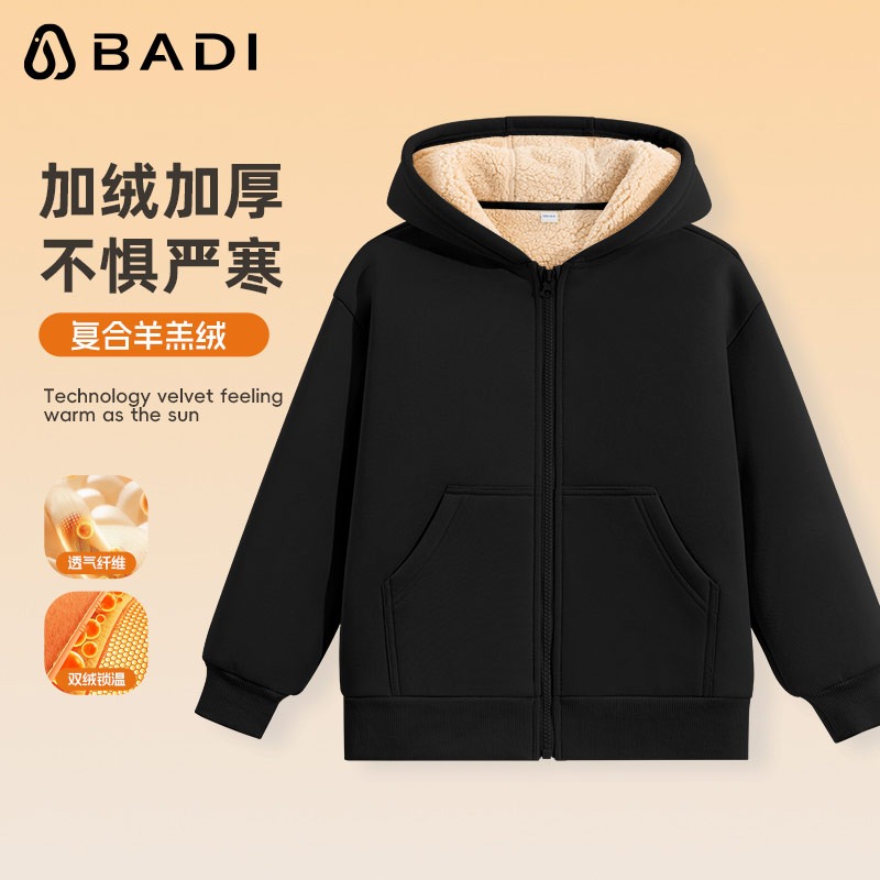 巴帝巴帝童装女童外套2025新款加厚冬季上衣女孩加绒冬装开衫卫衣