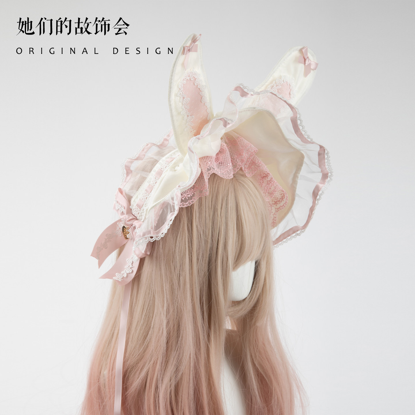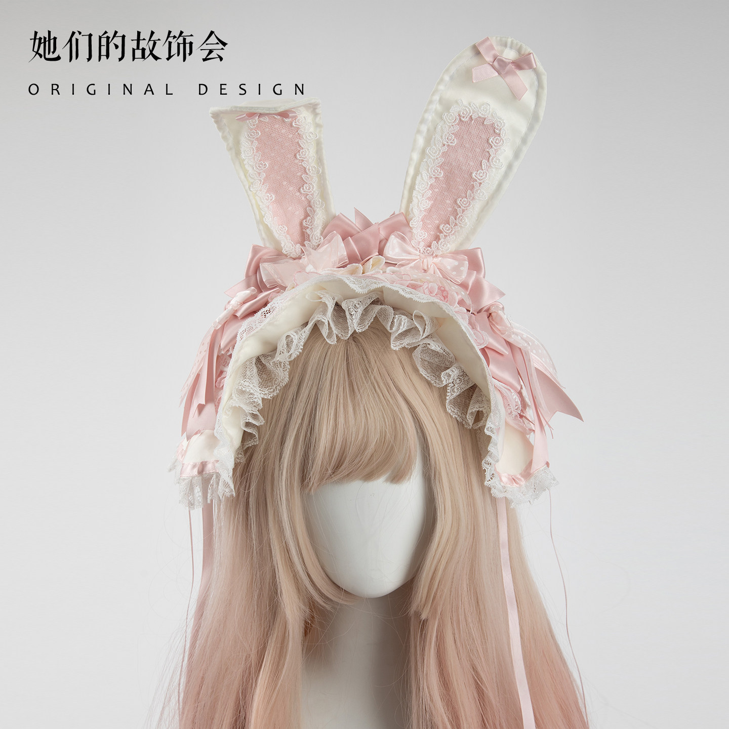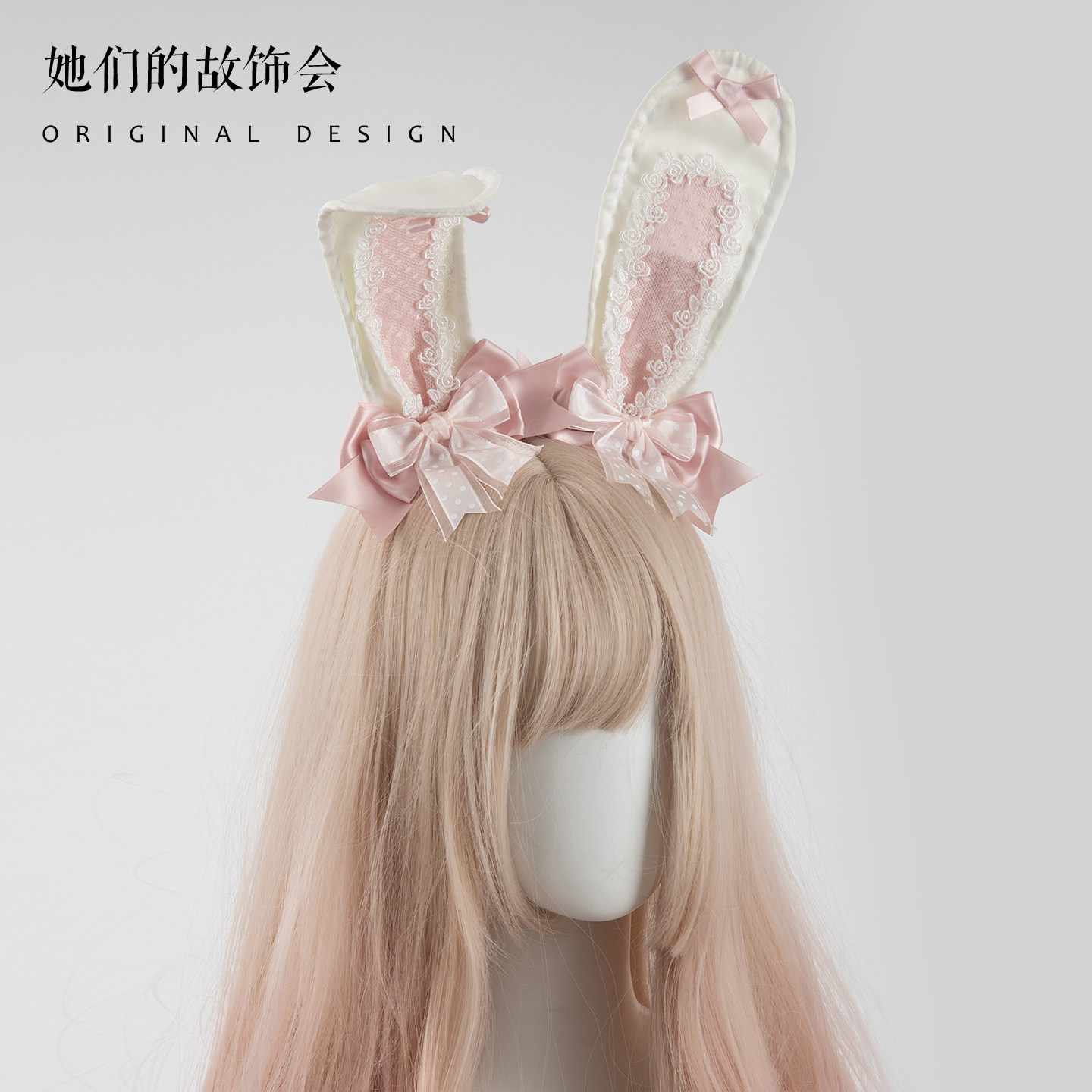 Lolita原创她们的故饰会蝴蝶结小兔手作小物波奈特bnt兔耳发带kc