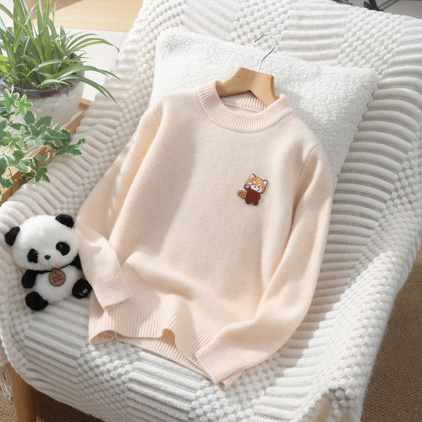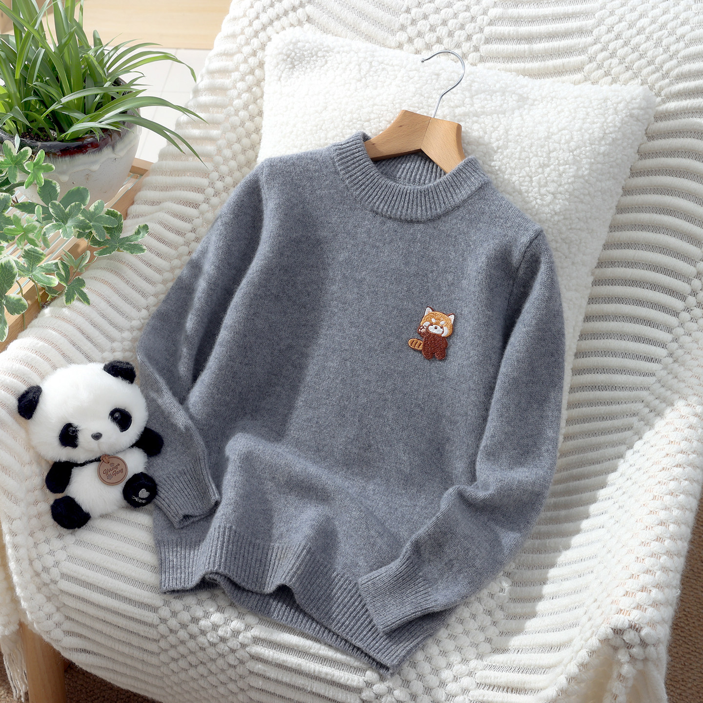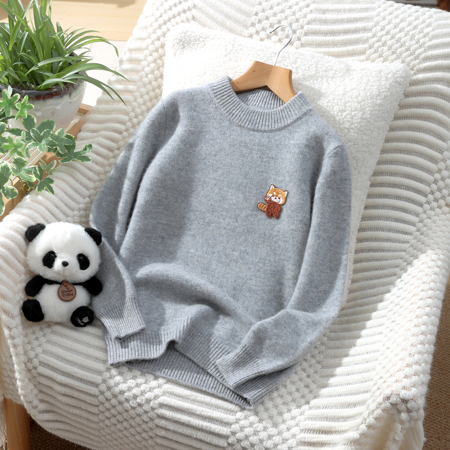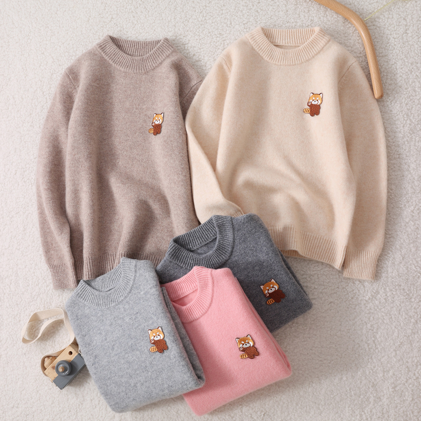 儿童羊毛衫男女童同款小浣熊刺绣针织衫宝宝简约纯色毛衣小孩内搭