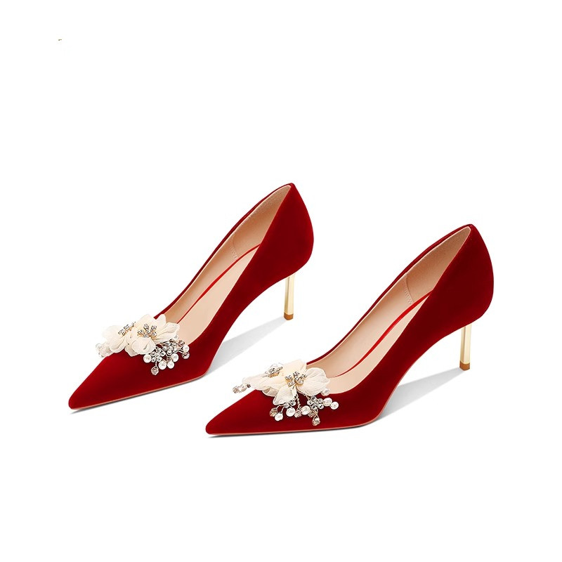 红色婚鞋女款2024新款结婚鞋子新娘鞋中式上轿秀禾服高跟鞋高级感