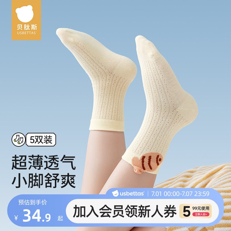 贝肽斯儿童袜子春夏薄款棉袜新生婴儿男女袜透气网眼中筒袜夏季