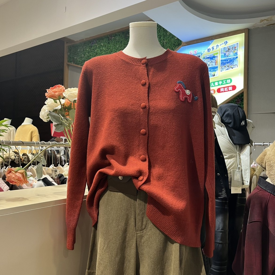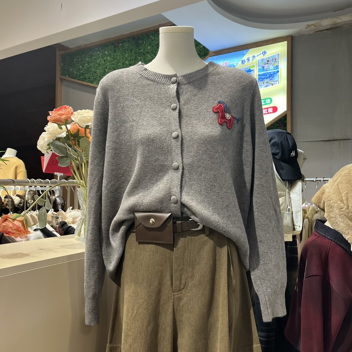 欧洲站2025秋冬新款圆领刺绣小马大码显瘦宽松软糯针织开衫女潮