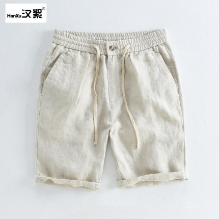 汉絮亚麻松紧腰系带沙滩休闲短裤