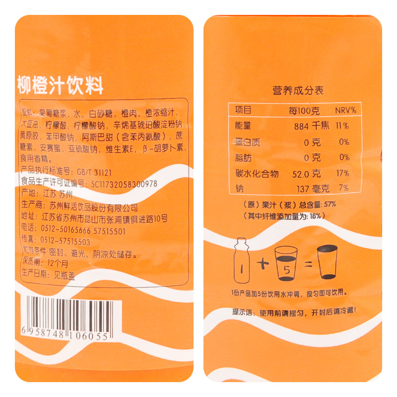 鲜活含果肉柳橙汁1.03kg荔枝山竹浓缩果汁饮料奶茶店商用原料