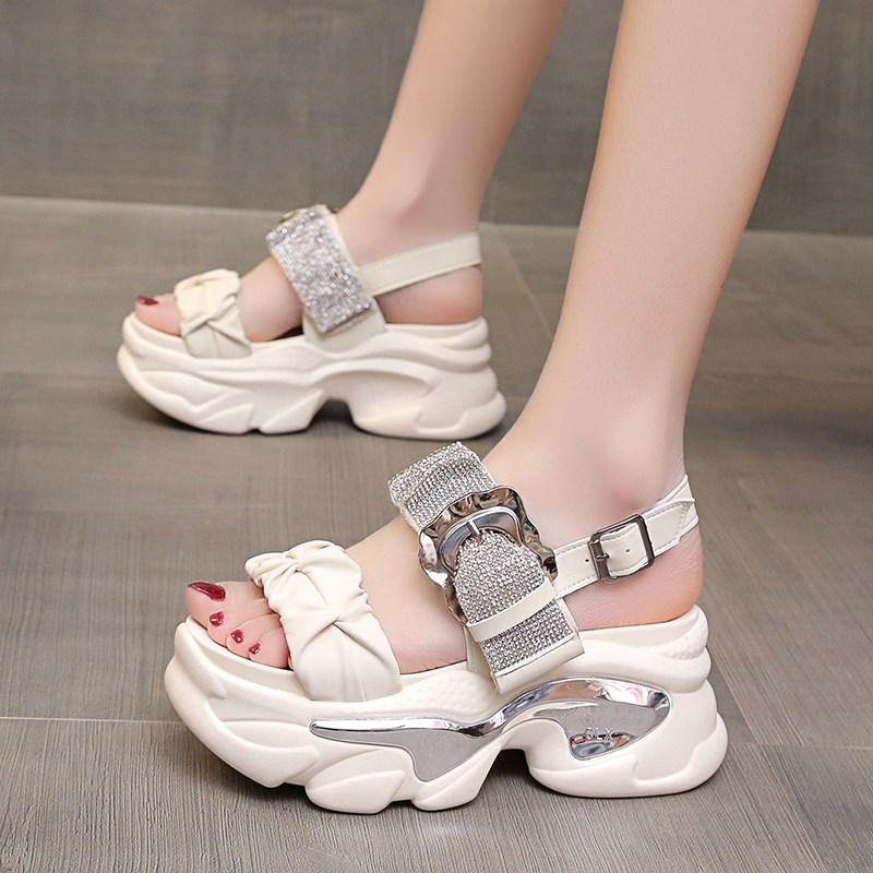 2025夏季新款8cm内增高凉鞋厚底水钻凉鞋女百搭高跟凉Z鞋坡跟凉鞋