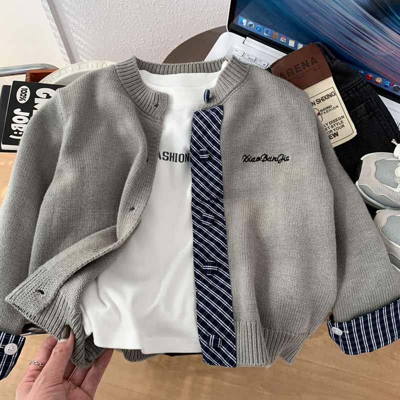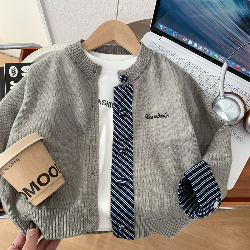 男童毛衣开衫2025春秋新款儿童时尚撞色针织衫外套男孩学院风毛衣