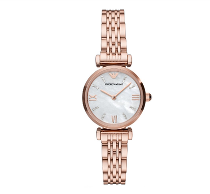 Armani阿玛尼手表女表石英表白贝母镶钻轻奢气质玫瑰金AR11316
