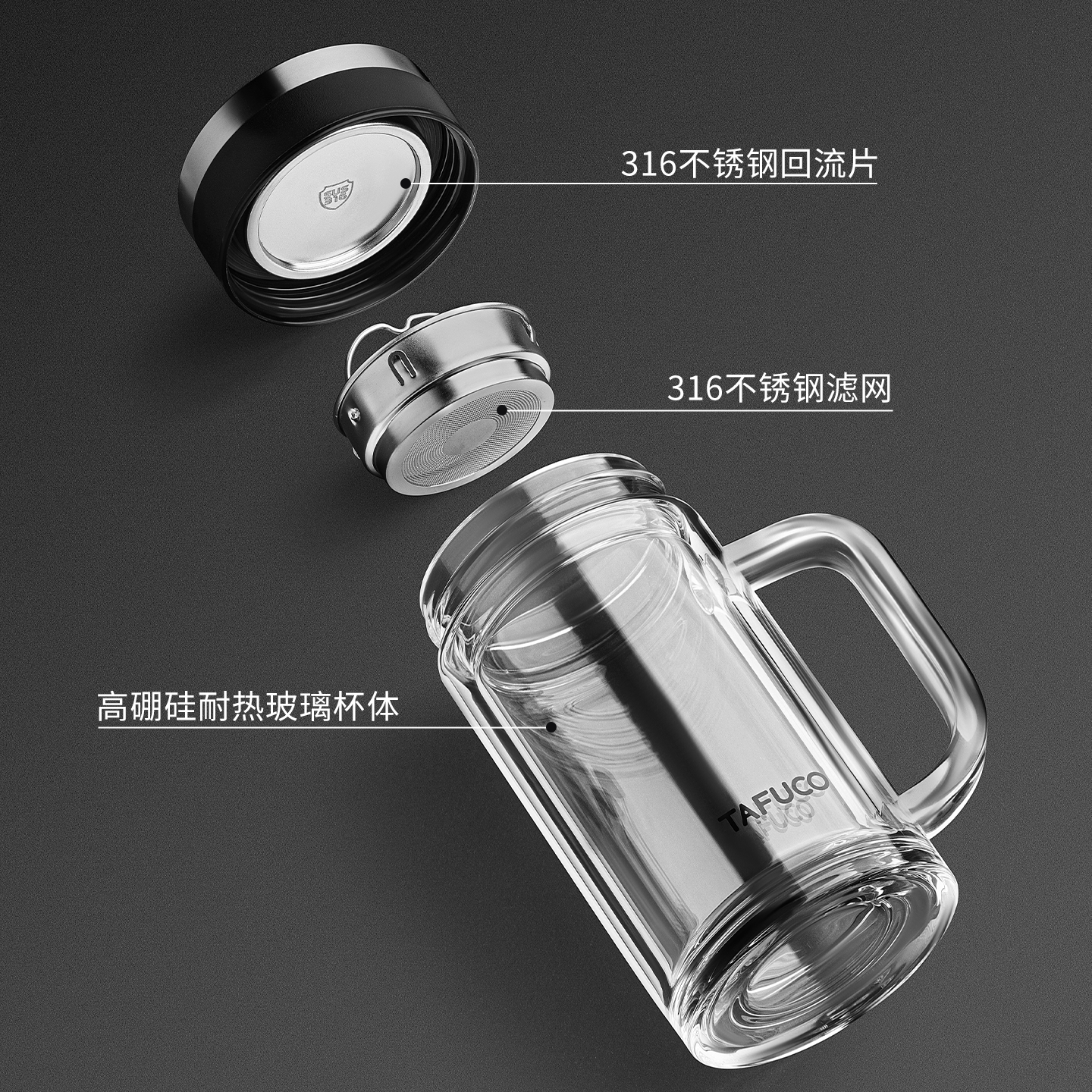 TAFUCO/泰福高家用便携双层隔热高档茶隔玻璃茶杯大容量男办公室