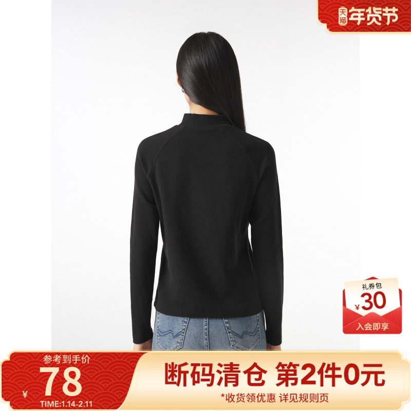 热风2024年冬季新款女士舒适时尚潮流休闲简约款熊猫印花加绒长T