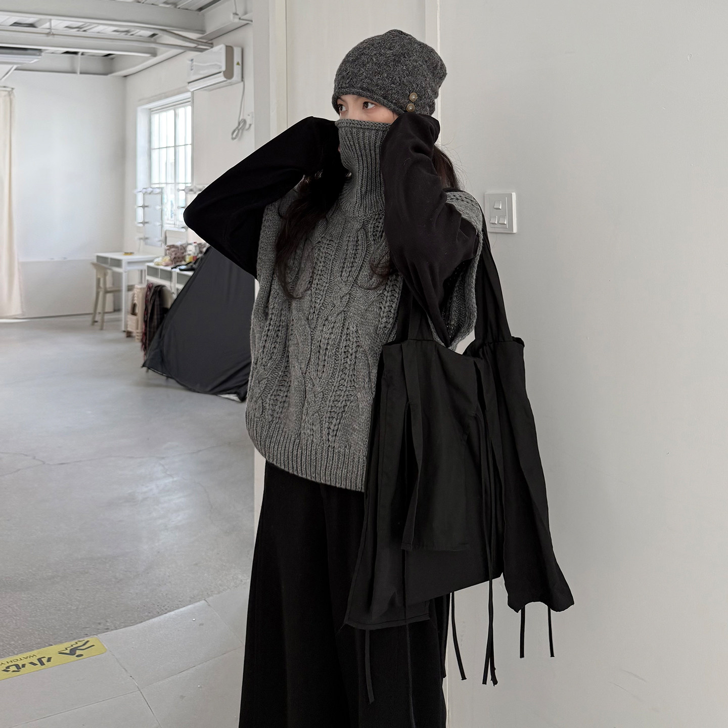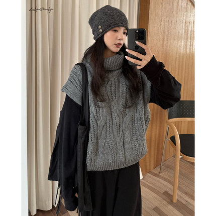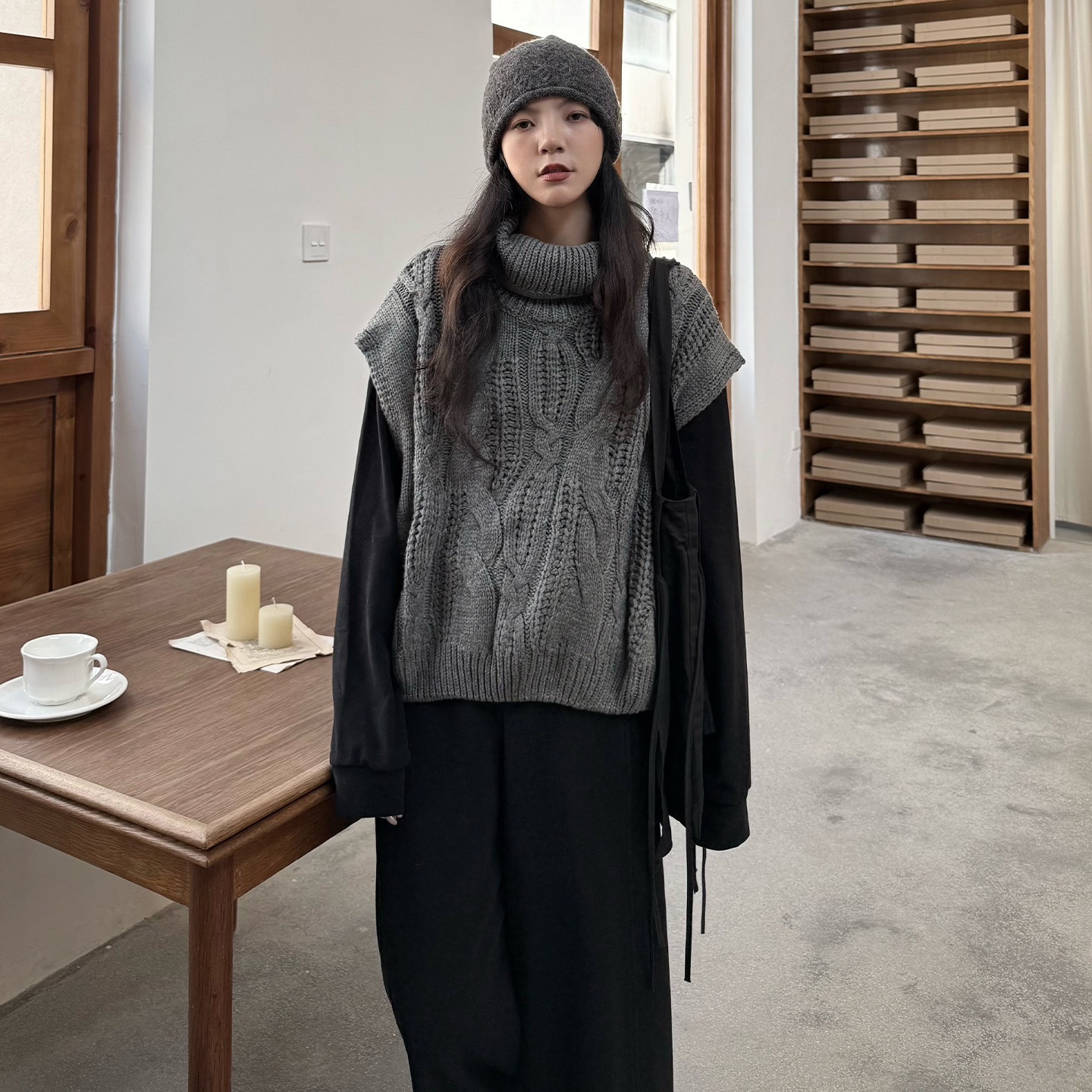 陆与山屿【星稀】秋冬季提花灰色系高领无袖毛衣女可外穿内搭上衣