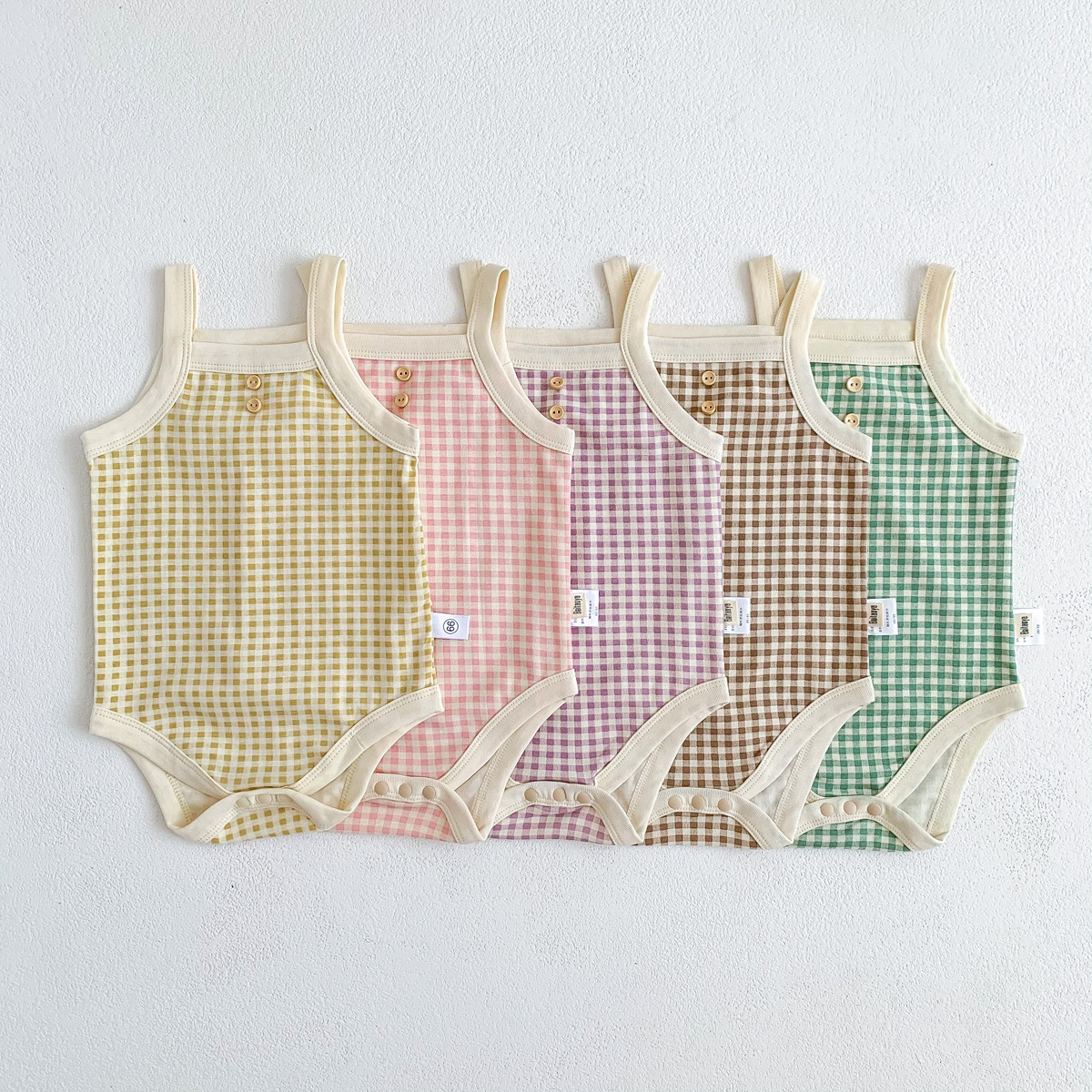 童装夏季新款婴儿吊带格子包屁衣三角哈衣男宝小背心小女孩爬爬服