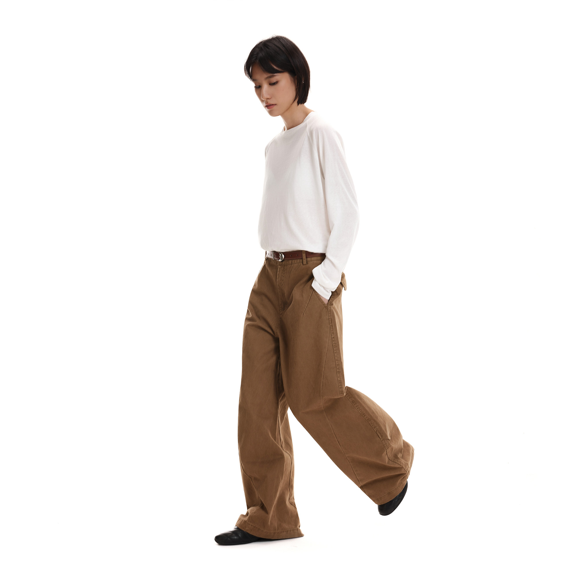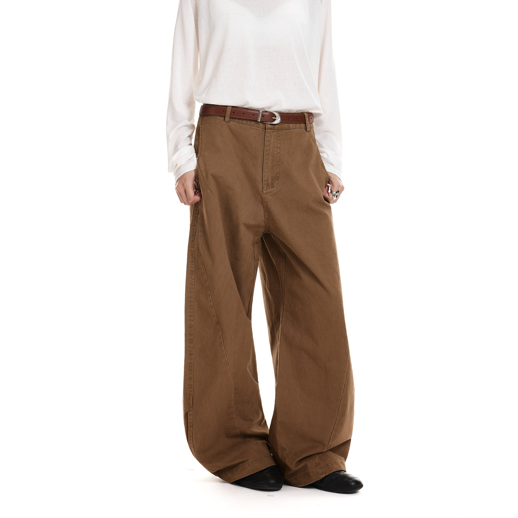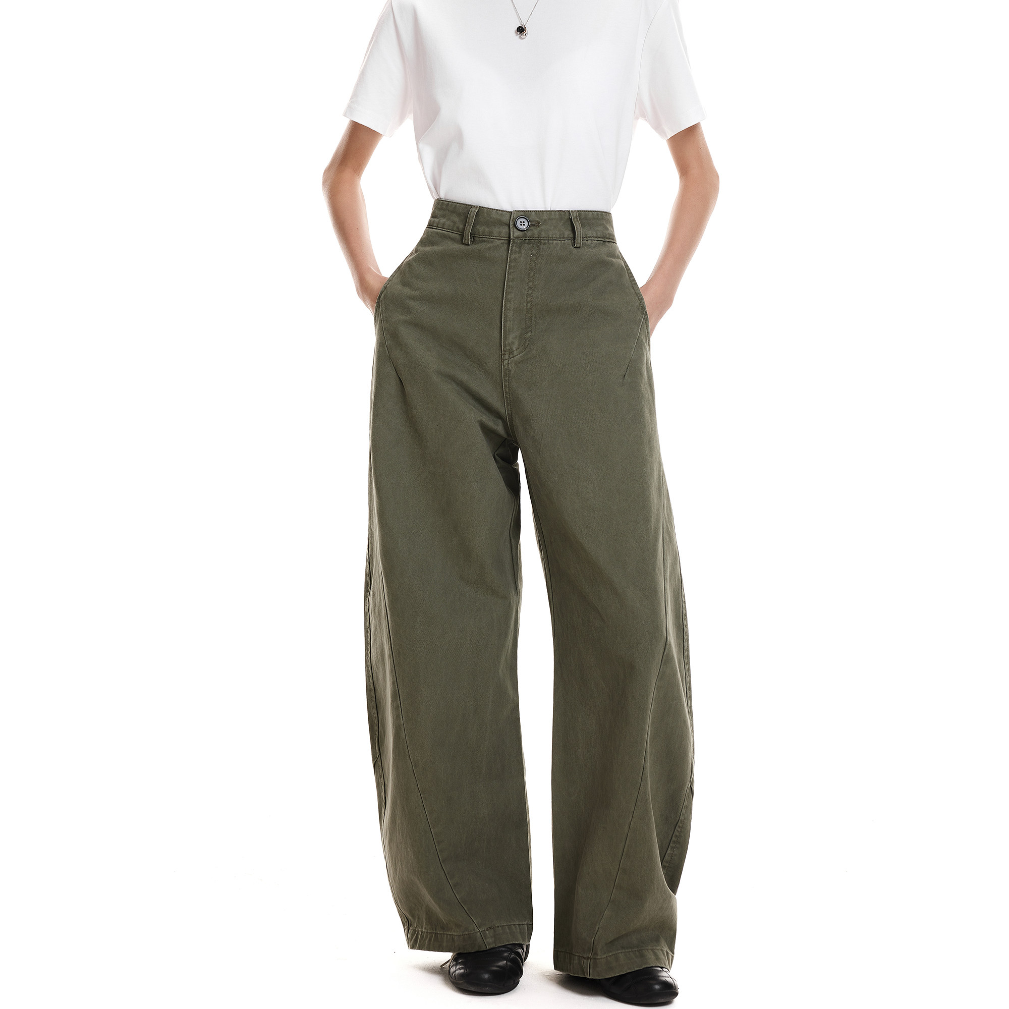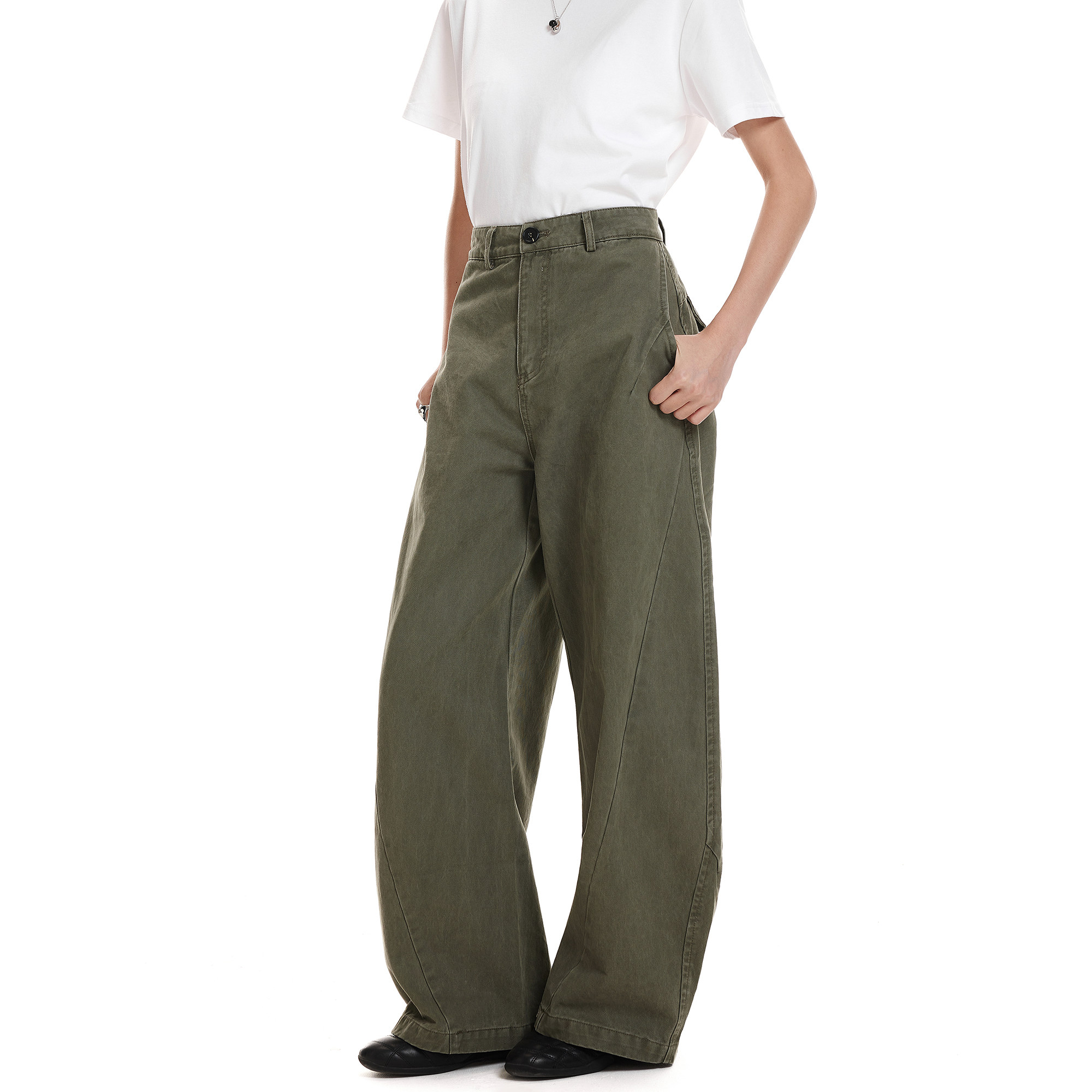 Syri解构裁剪拼接复古重磅休闲裤直筒裤无性别军绿色弯刀宽松裤子