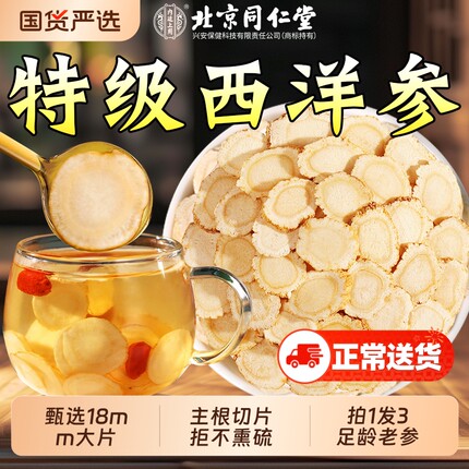 北京同仁堂西洋参官方旗舰店正品中药材500g切片泡水长白山特级