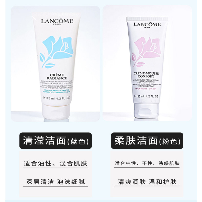 Lancome兰蔻洗面奶蓝色清莹柔肤洁面乳125ml粉色温和控油清爽正品