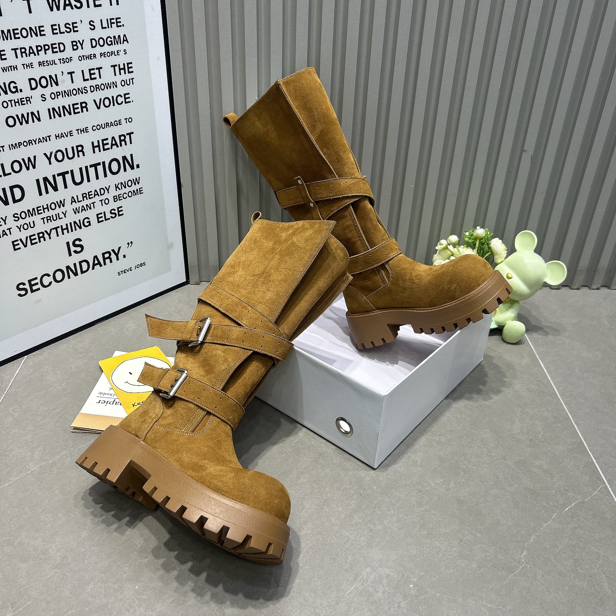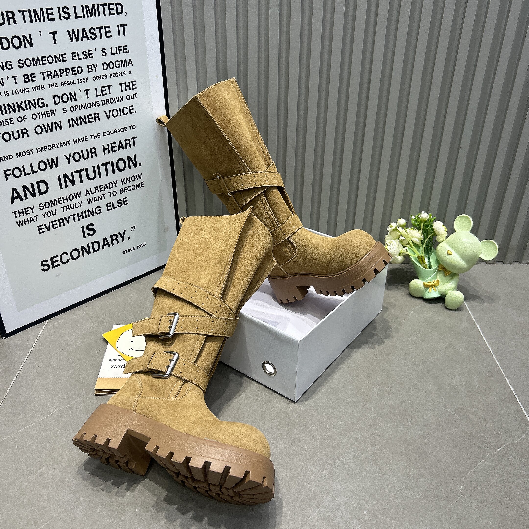 网红小个子增高复古超火爆款厚底西部靴皮带扣秋冬高筒靴女骑士靴