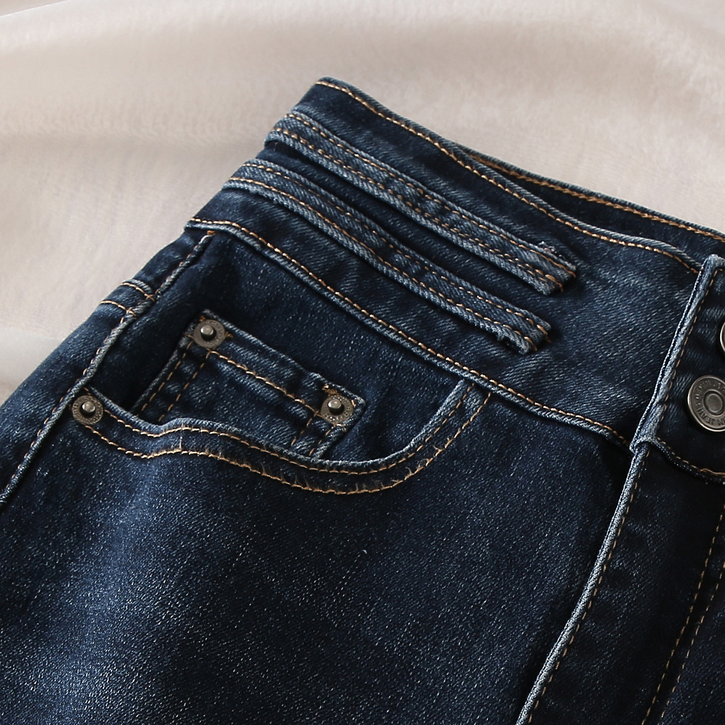 蓝灰色时尚百搭高腰显瘦牛仔裤女