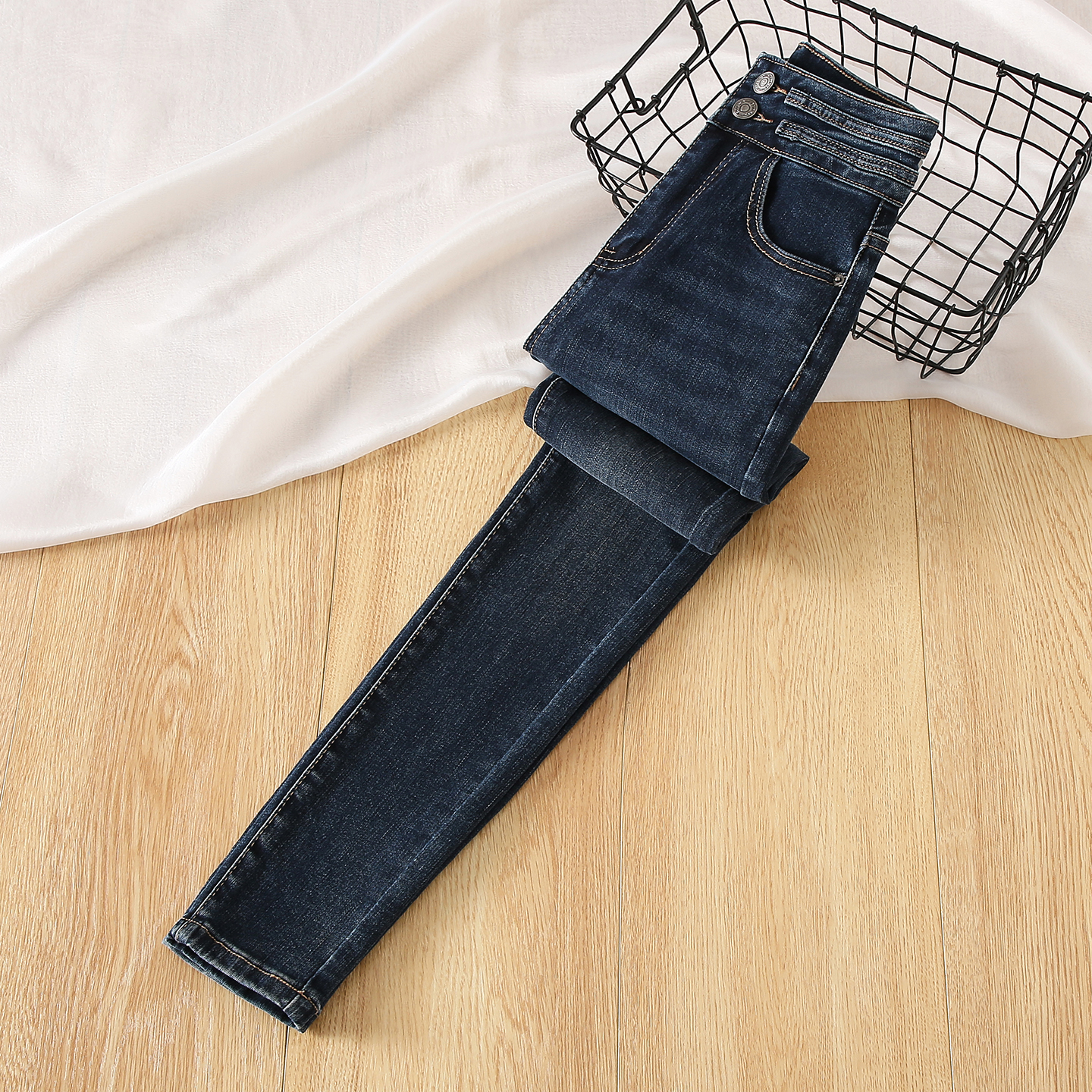 蓝灰色百搭高腰显瘦小脚牛仔裤女2025秋冬新款弹力修身辣妹铅笔裤