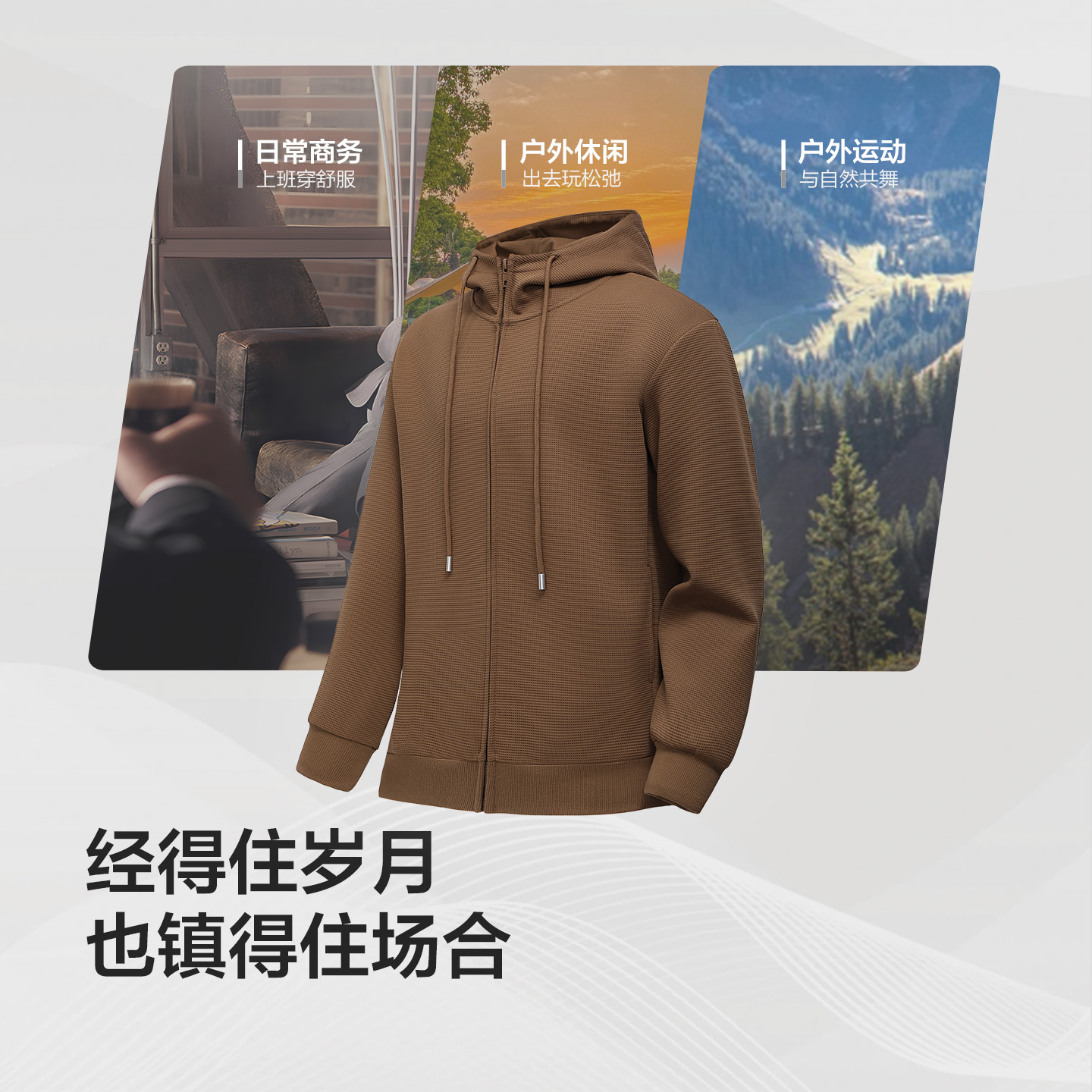 红豆开衫连帽外套男2025年春秋款华夫格重磅卫衣纯色夹克上衣PC