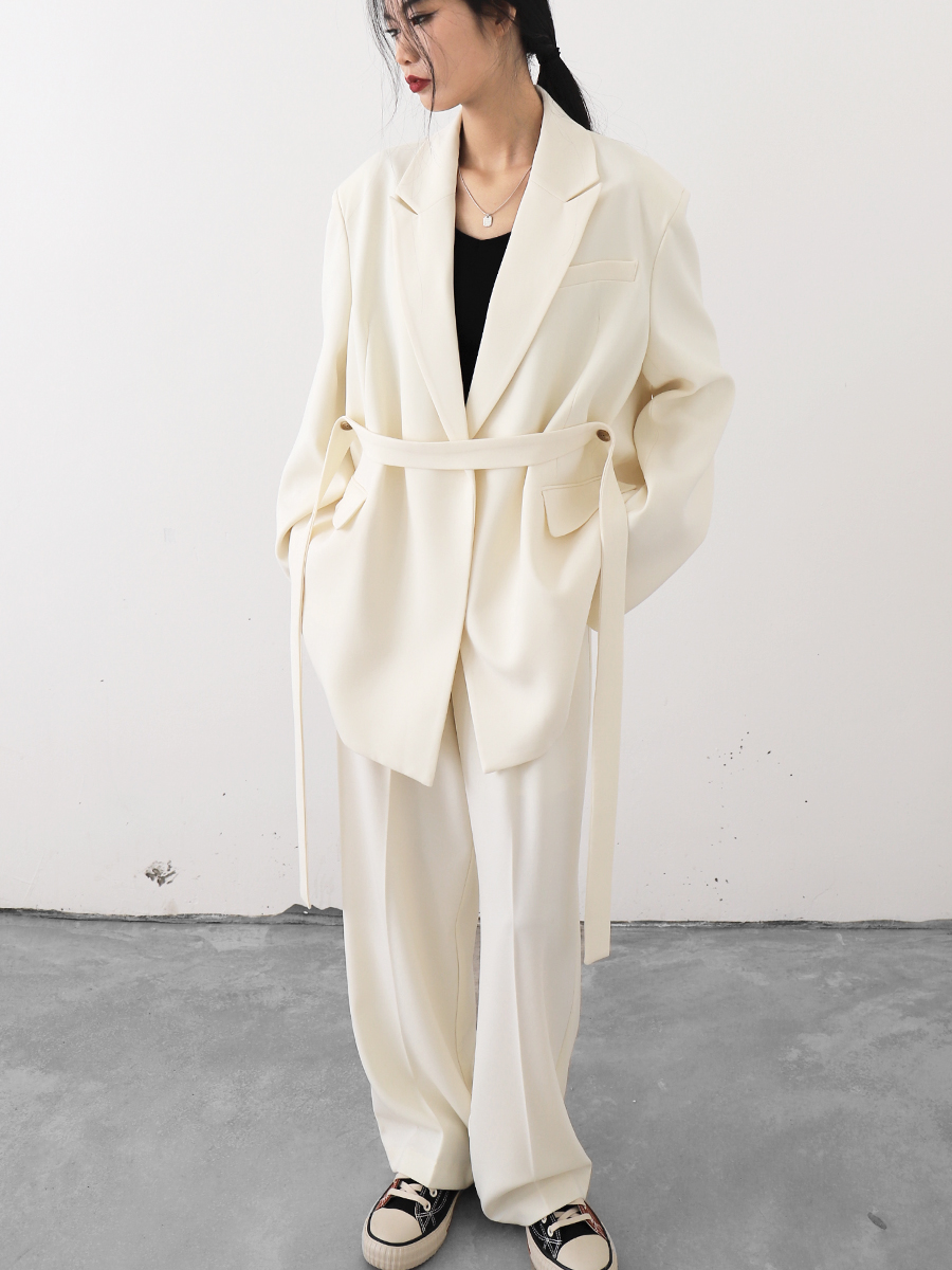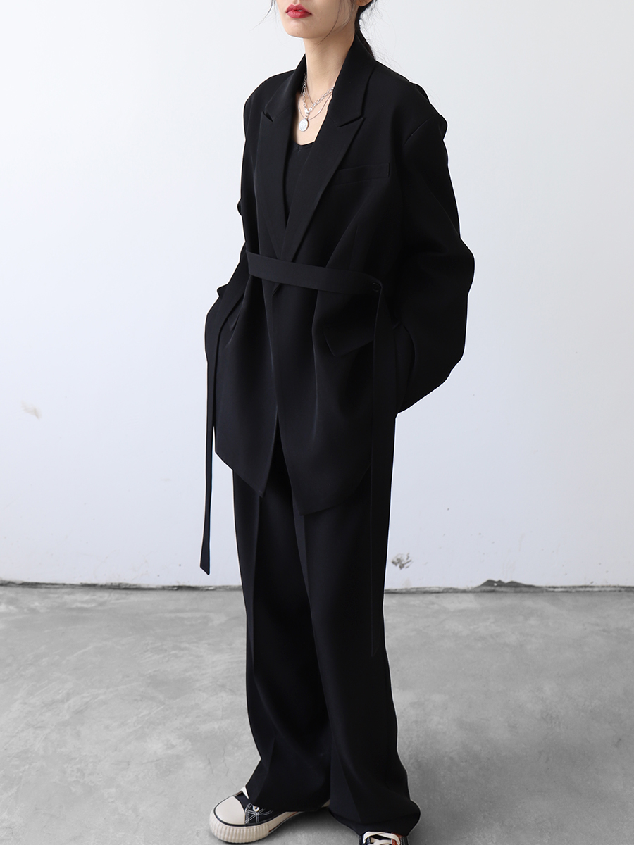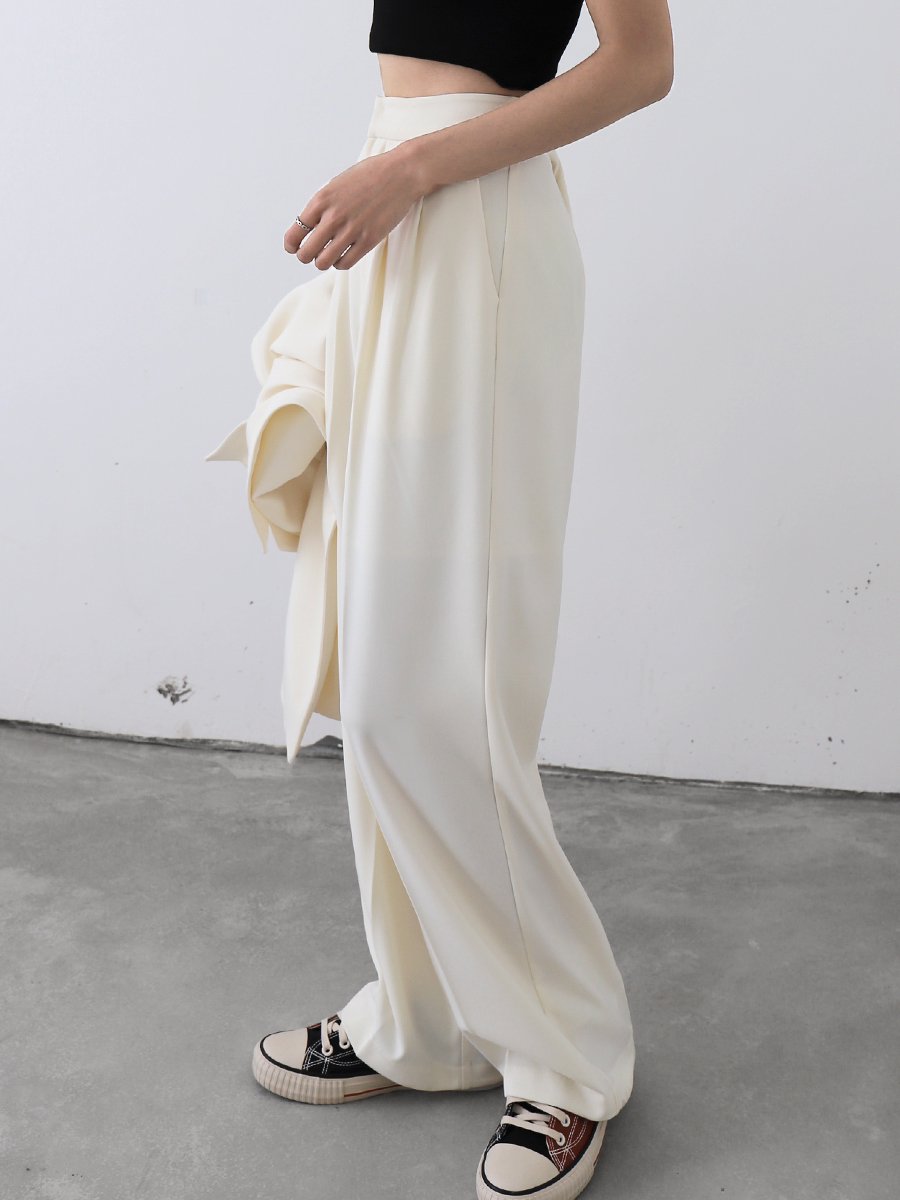 CHICCLO 2024春季新款垂感休闲宽松高腰直筒阔腿拖地西装裤女长裤