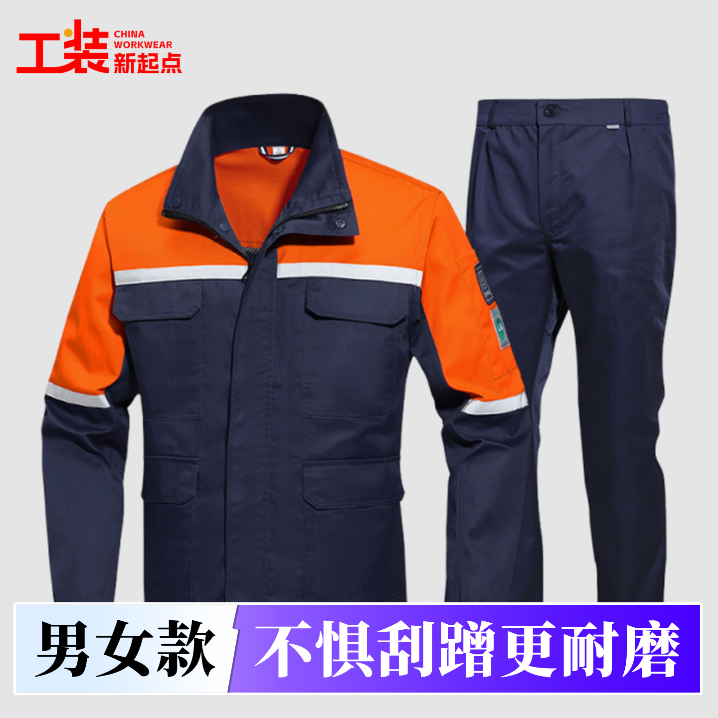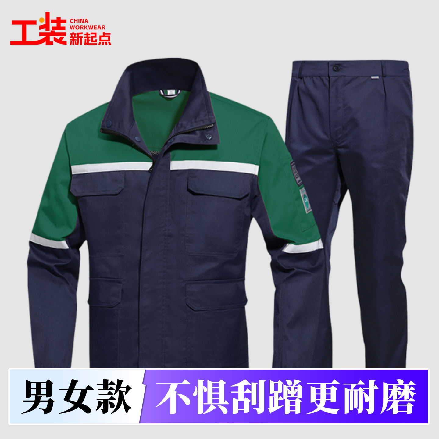 春秋长袖工作服套装国标网格防