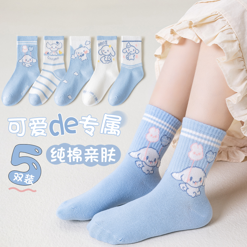 纯棉女童袜子玉桂狗卡通儿童a类棉袜子男女中大童秋冬季儿童袜子