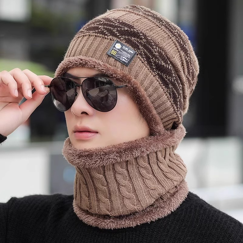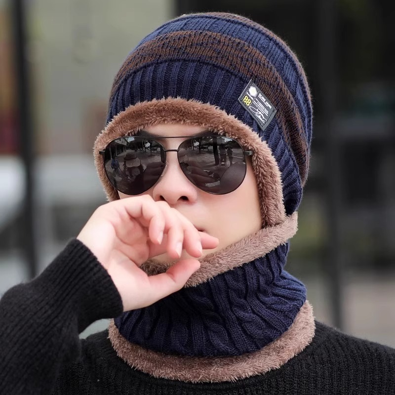 帽子男士秋冬季加绒加厚保暖冬天骑车防寒防风护脖百搭针织毛线帽