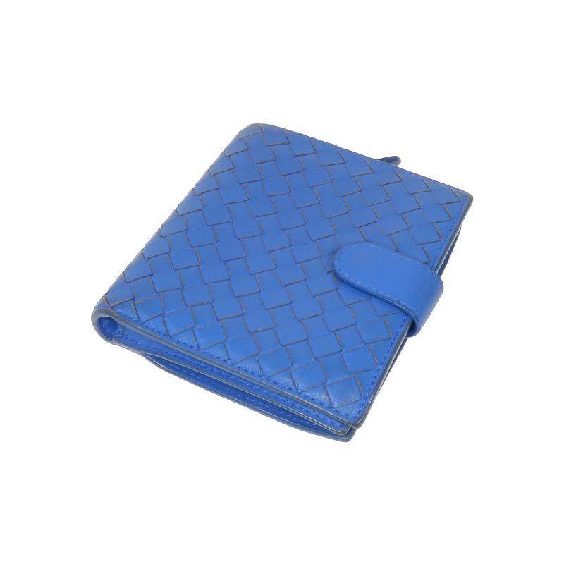 中古Bottega Veneta葆蝶家女C级85新wallet钱包羊皮短钱包蓝色