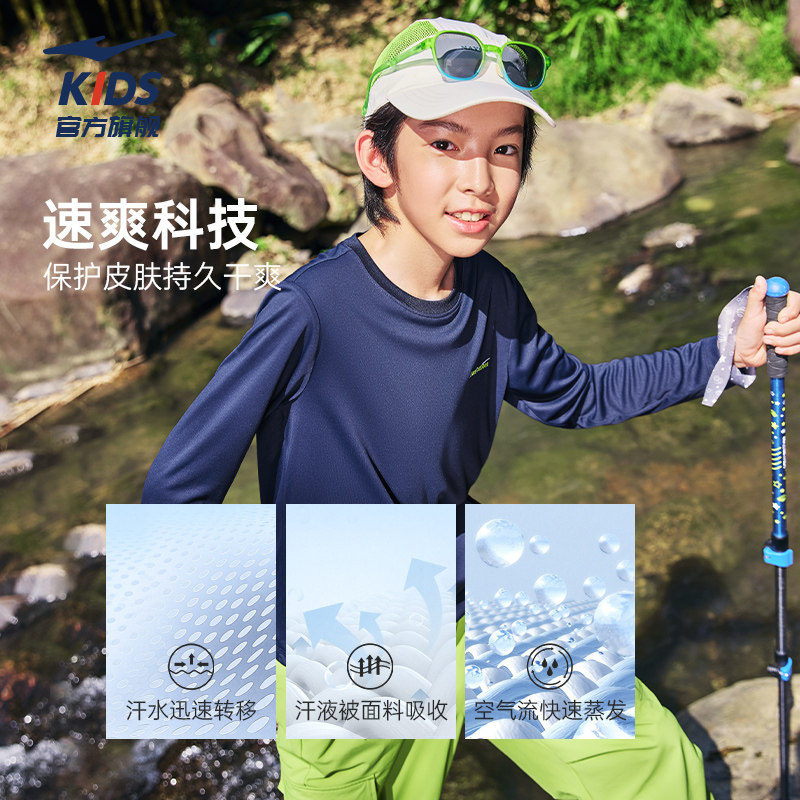 鸿星尔克童装儿童长袖T恤2026春季男童打底衫速干圆领女童防晒衣