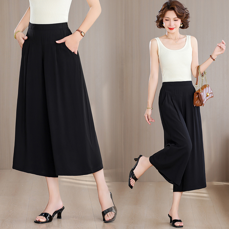夏季新款纯棉绸阔腿裤大码宽松七分裤中年妈妈裙裤女高腰薄款裤子