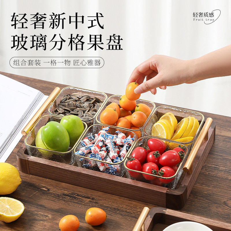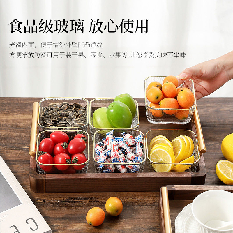 胡桃木玻璃水果盘轻奢干果坚果盘零售点心糖果收纳盒黑胡桃托盘