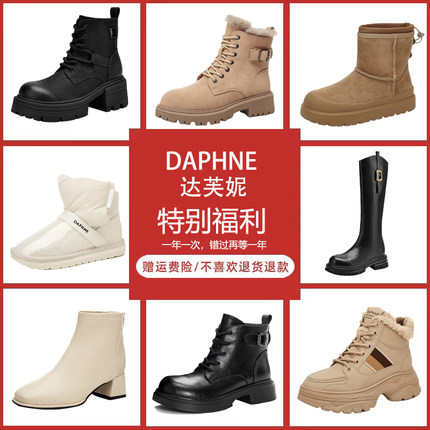 达芙妮时尚马丁靴秋冬百搭保暖靴子女加绒工装靴休闲短靴单靴