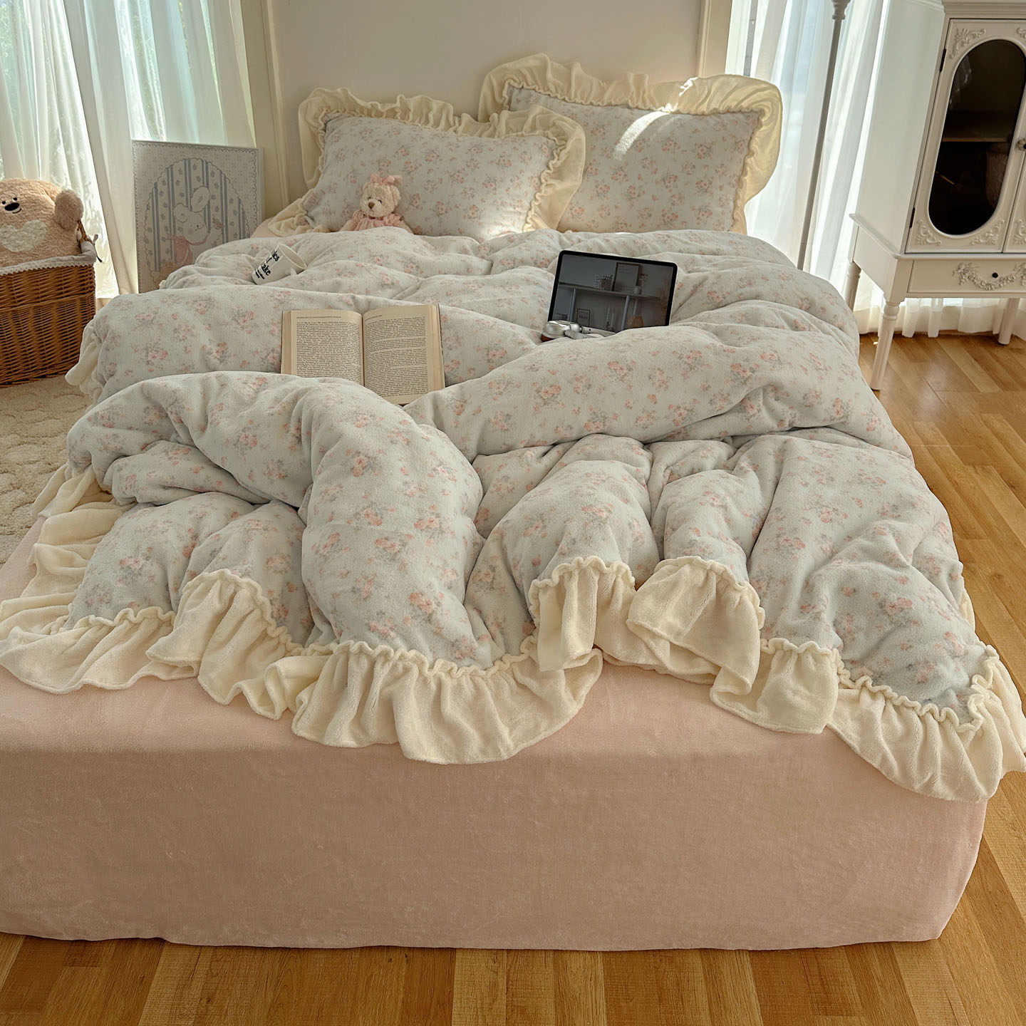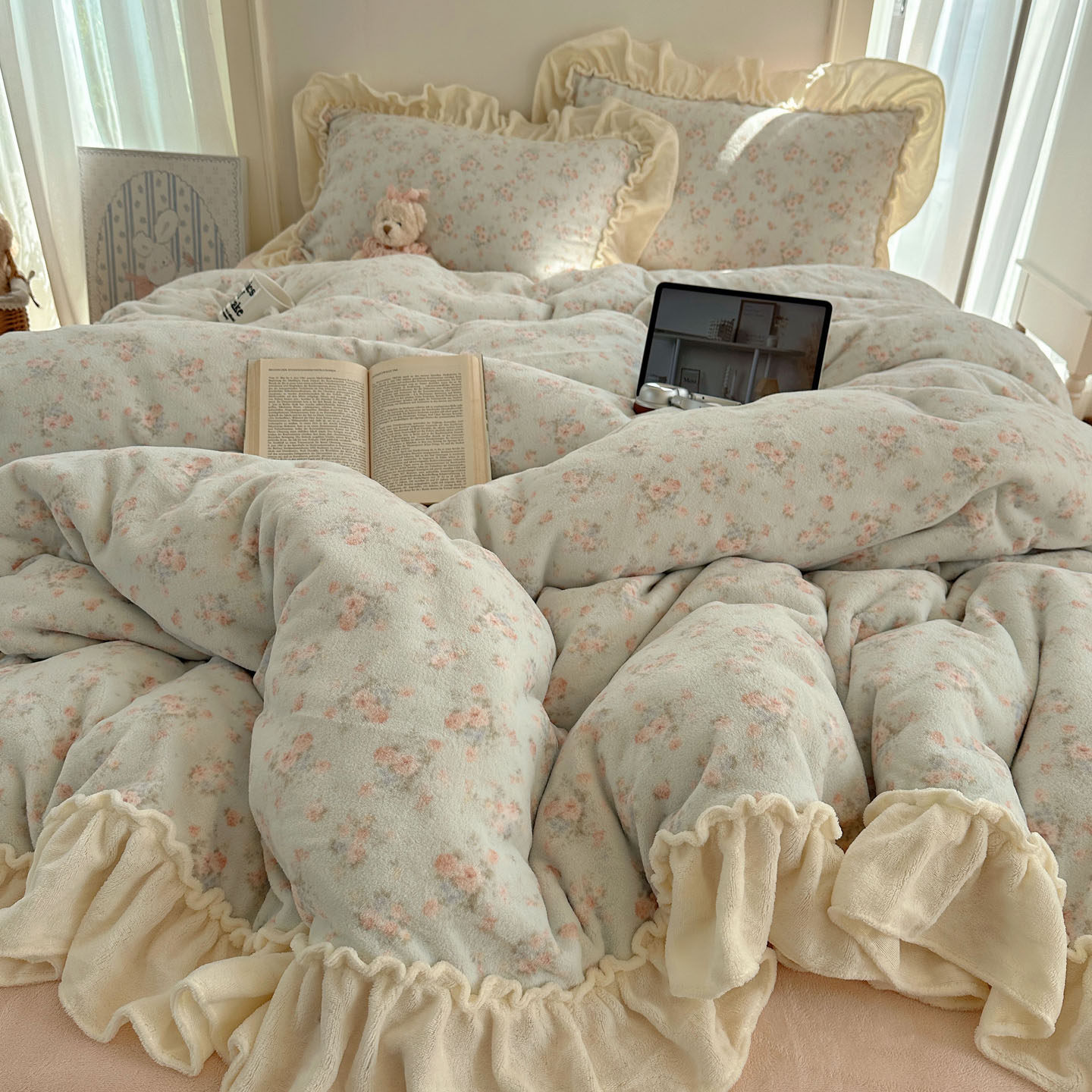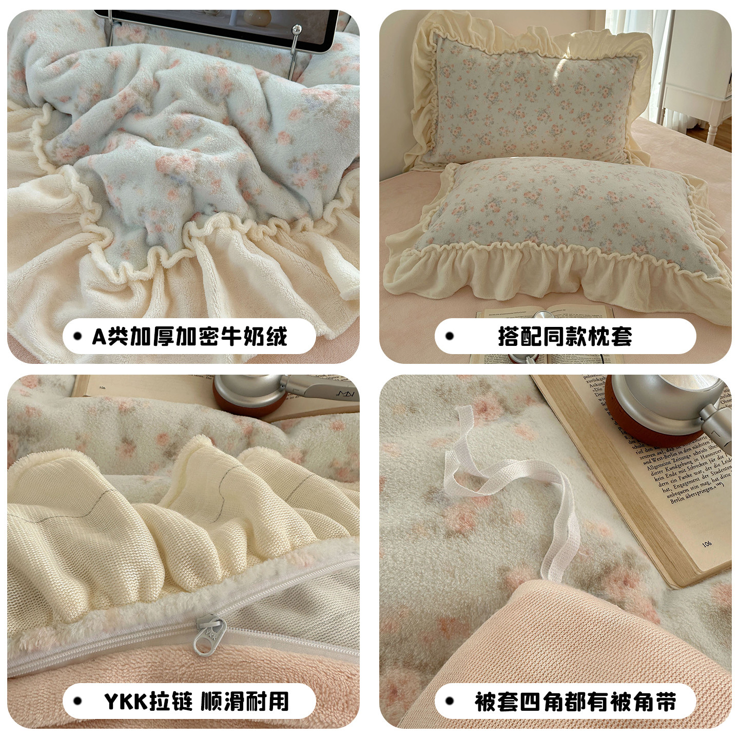 法式奶油风四件套牛奶绒加厚双面绒冬季珊瑚绒床单被套床品三件套