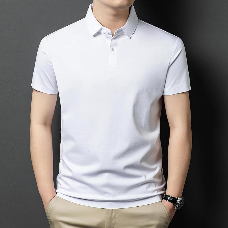 2025新款翻领短袖t恤男士夏季丝光棉透气汗衫纯色百搭无痕polo衫