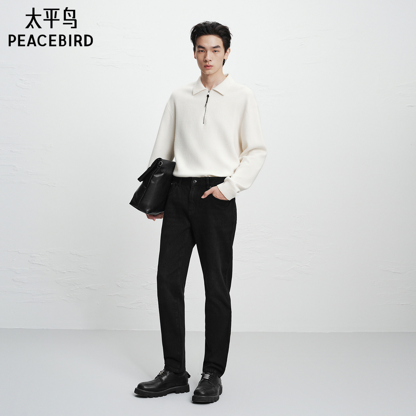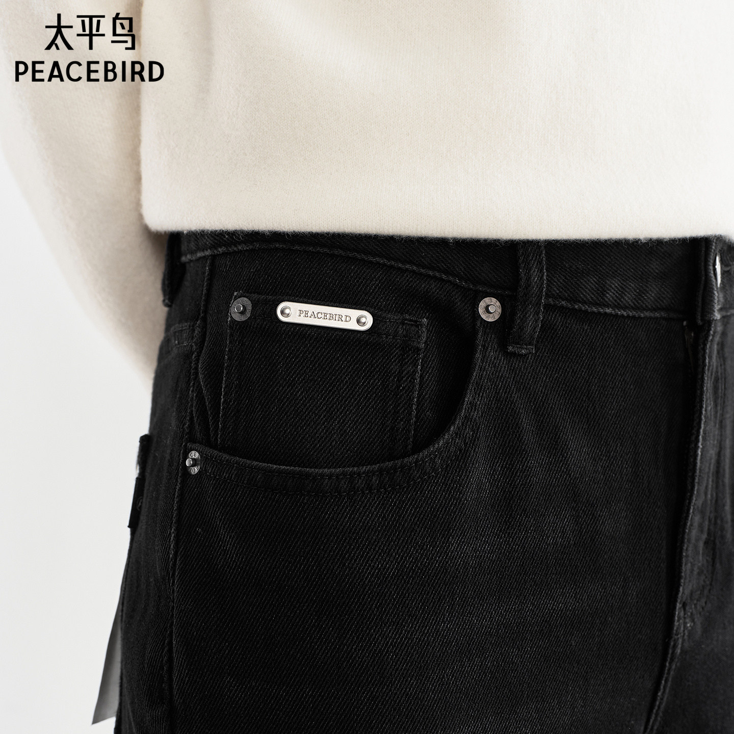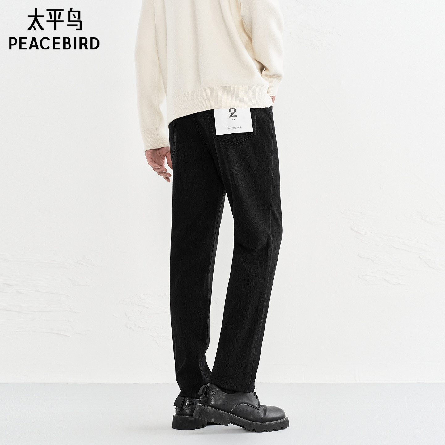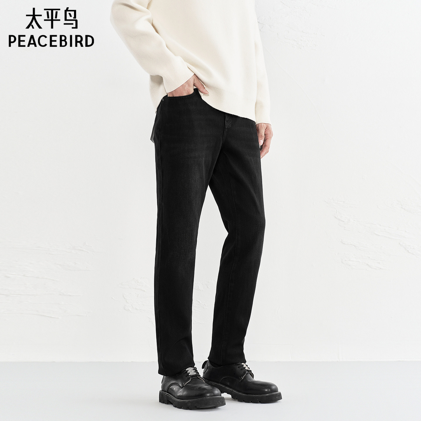 太平鸟男装水洗做旧修身牛仔裤秋季男士休闲裤子时尚青年