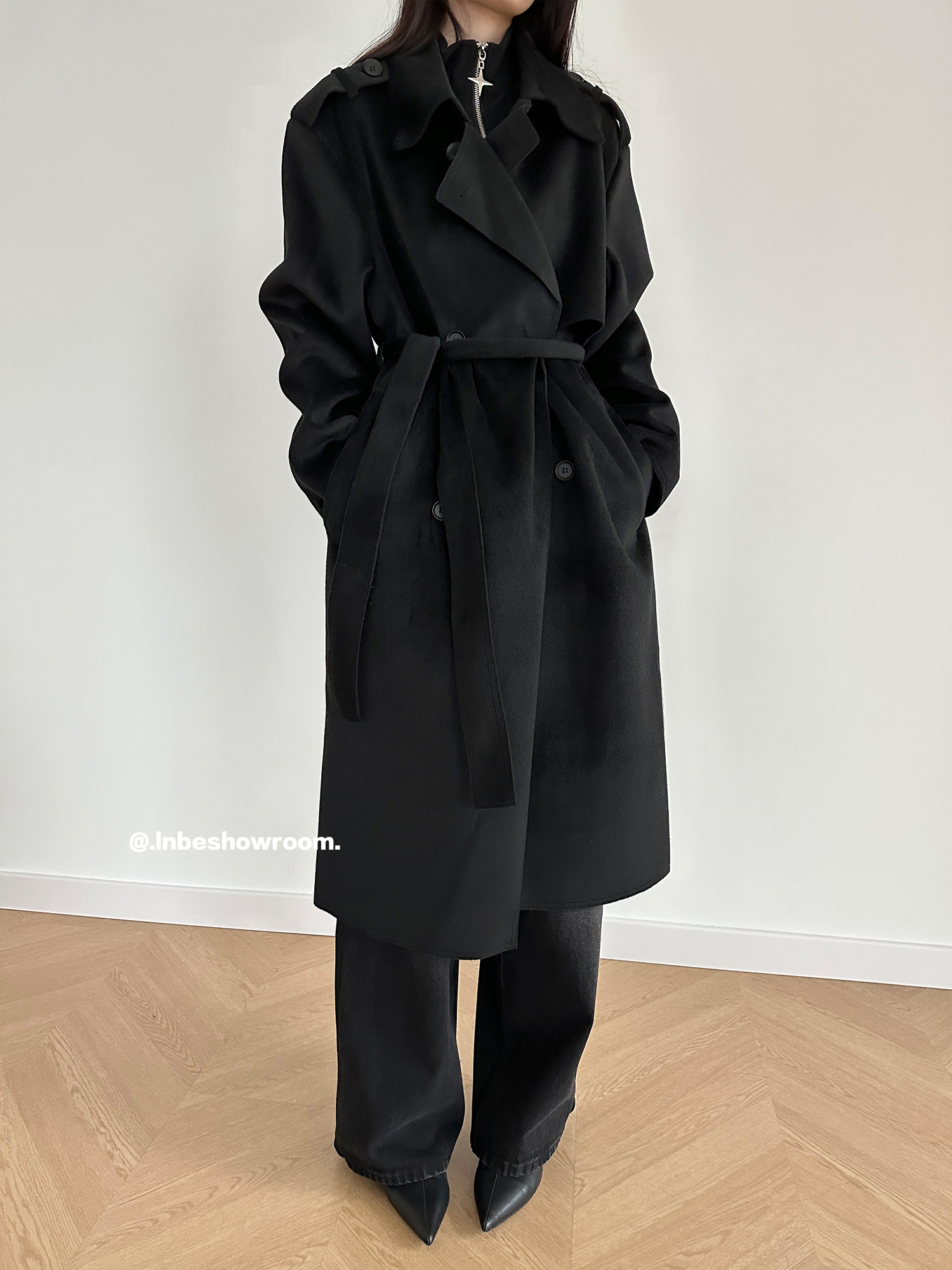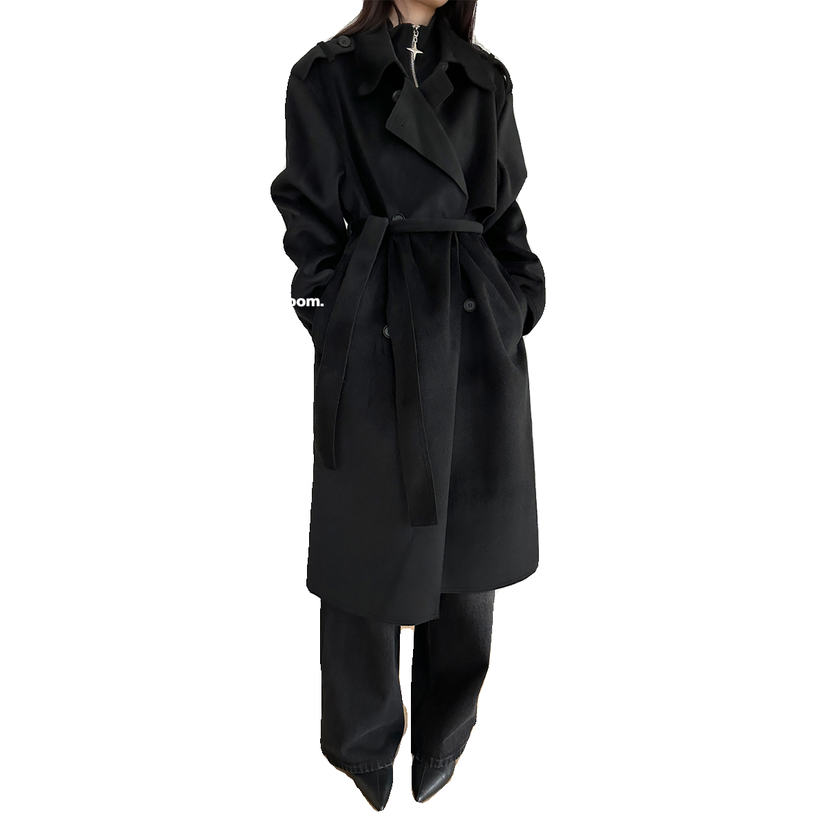 Inbeshowroom美拉德氛围感宽松毛呢大衣慵懒风简约中长款风衣外套